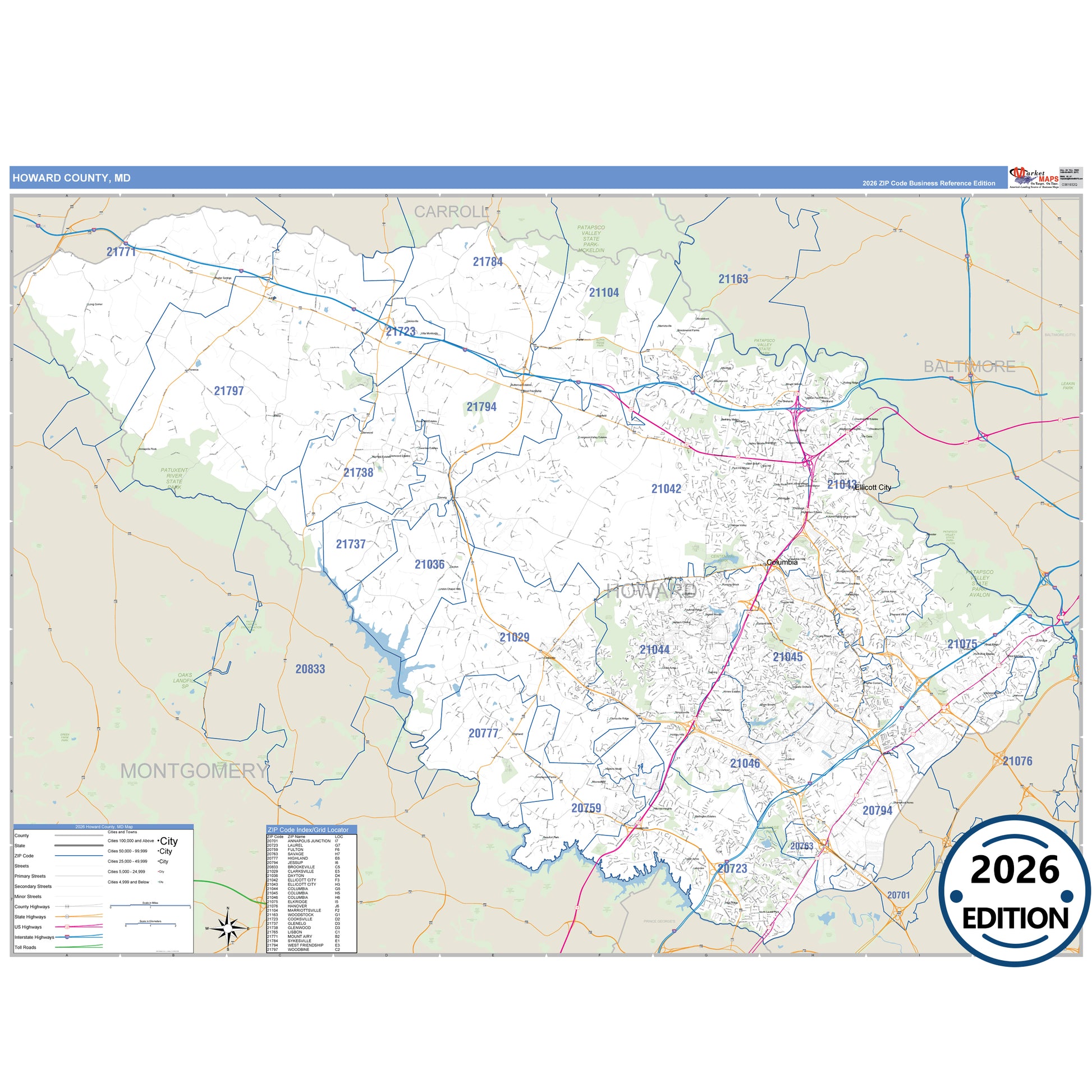 The Business Reference Style Howard County, MD is a detailed map that includes all towns, cities, major roadways, and highways. Available in multiple wall map sizes, perfect for home, school, office, or business display.