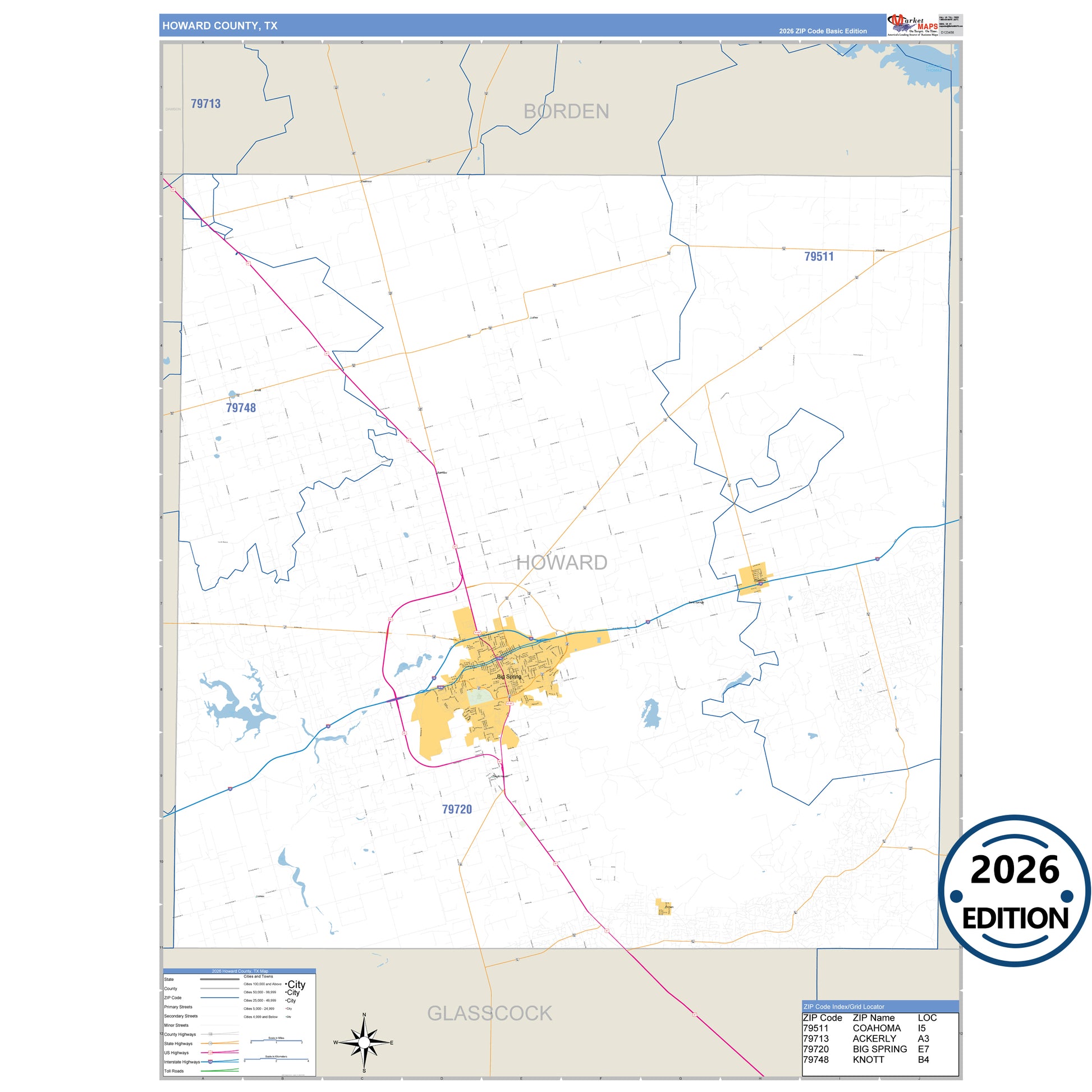 The Business Reference Style Howard County, TX is a detailed map that includes all towns, cities, major roadways, and highways. Available in multiple wall map sizes, perfect for home, school, office, or business display.