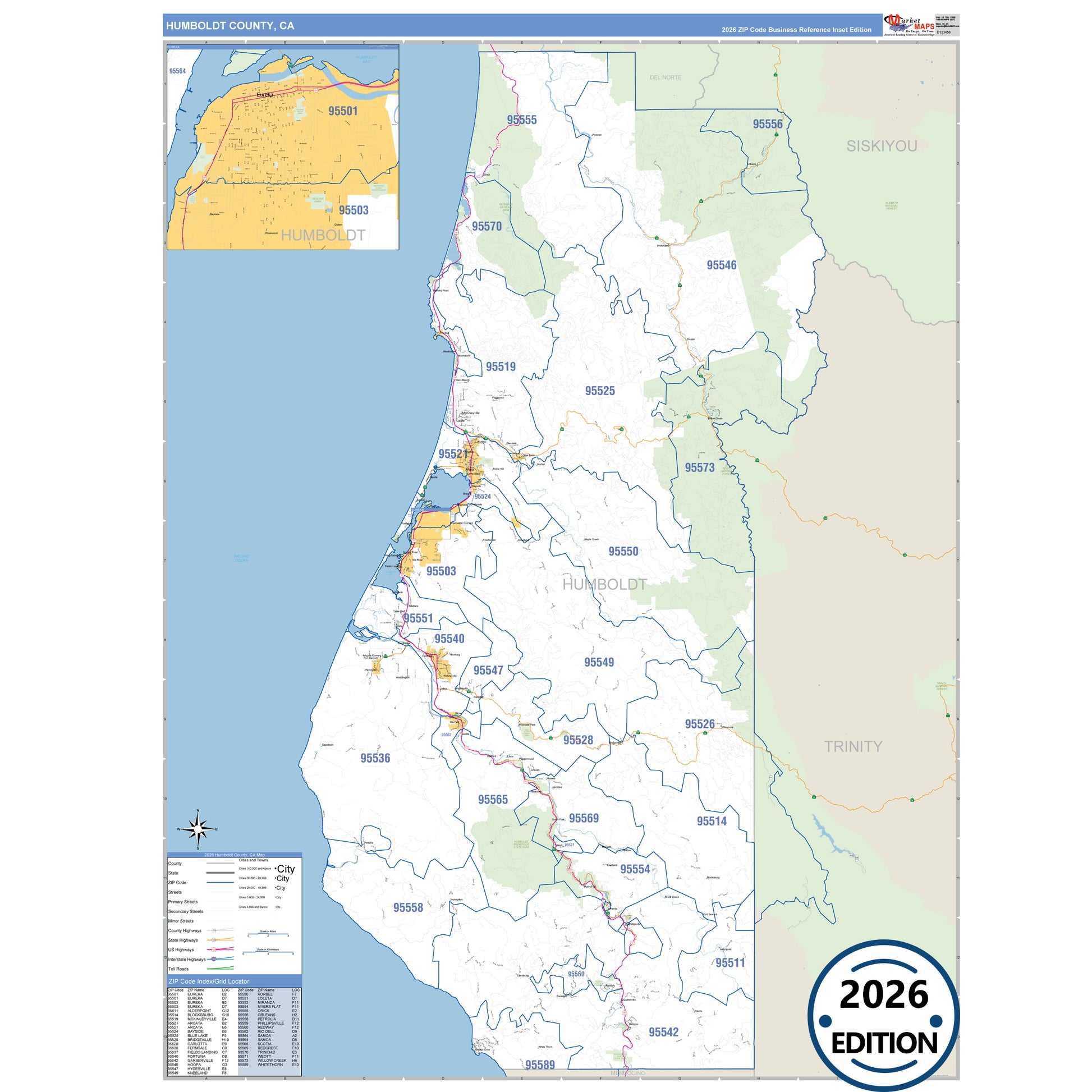 The Business Reference Style Humboldt County, CA is a detailed map that includes all towns, cities, major roadways, and highways. Available in multiple wall map sizes, perfect for home, school, office, or business display.