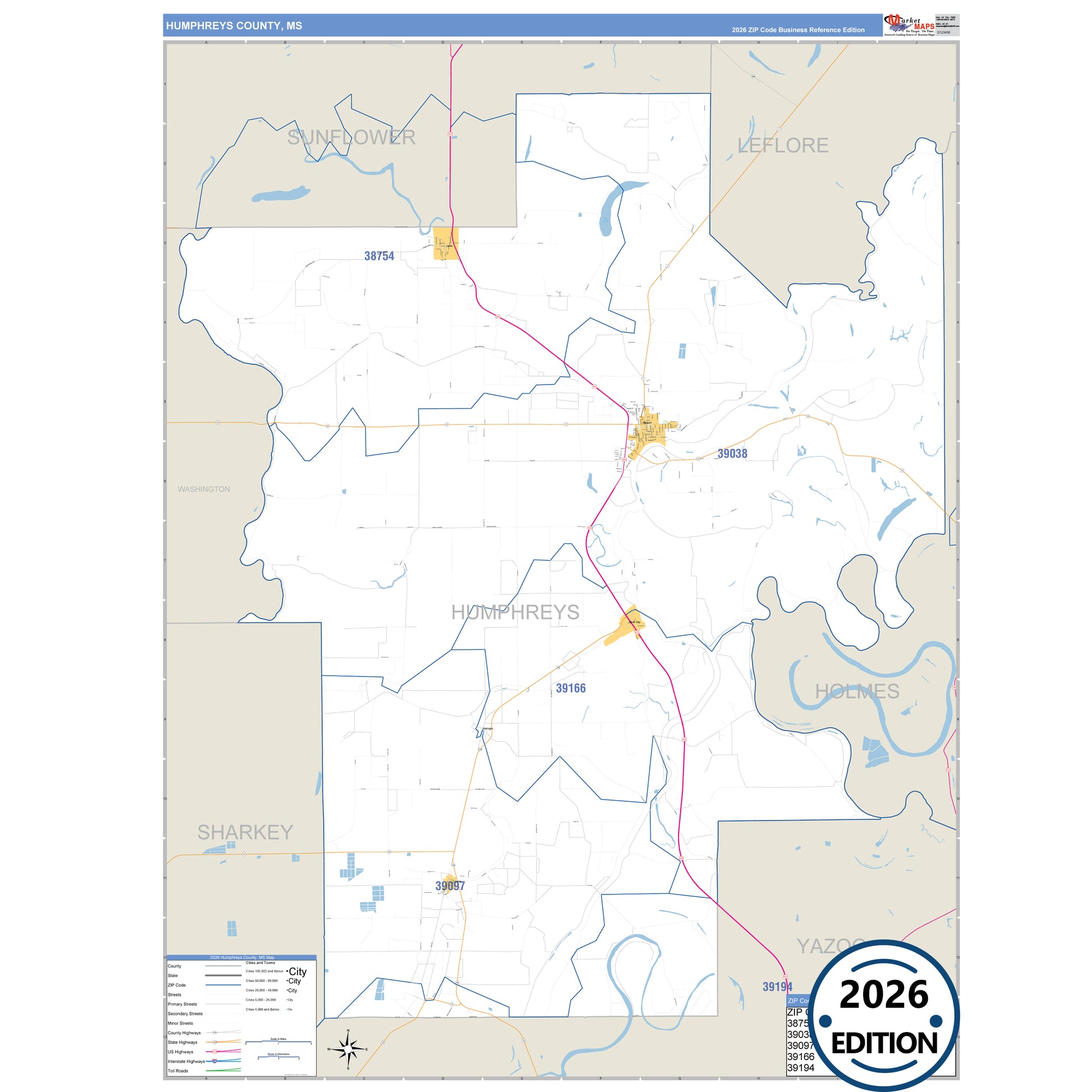 The Business Reference Style Humphreys County, MS is a detailed map that includes all towns, cities, major roadways, and highways. Available in multiple wall map sizes, perfect for home, school, office, or business display.