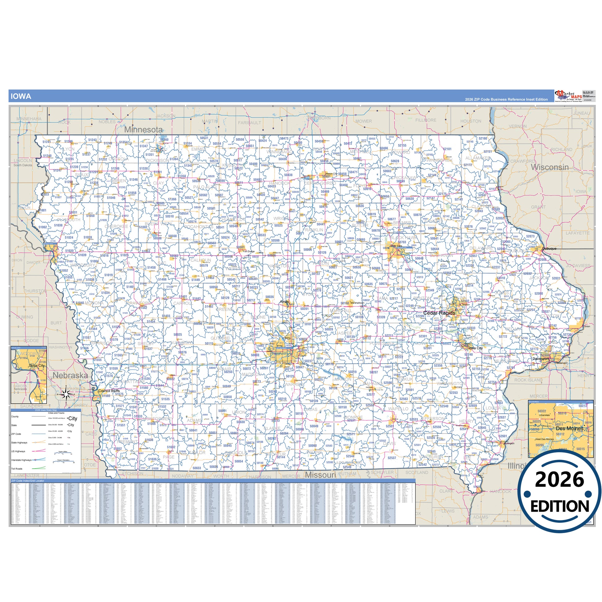 The Hawkeye State, Iowa, in Business Reference Style is a detailed, professional wall map designed for presentations, office displays, and classroom use. Featuring traditional color schemes and clear map details, this Iowa map showcases all major highways with precise highway markings and shaded populated areas for easy reference. Ideal for business planning, route mapping, and geographic visualization, the Business Reference Style Iowa Map provides a clean, visually appealing layout that is perfect for offices, schools, and meeting rooms.
