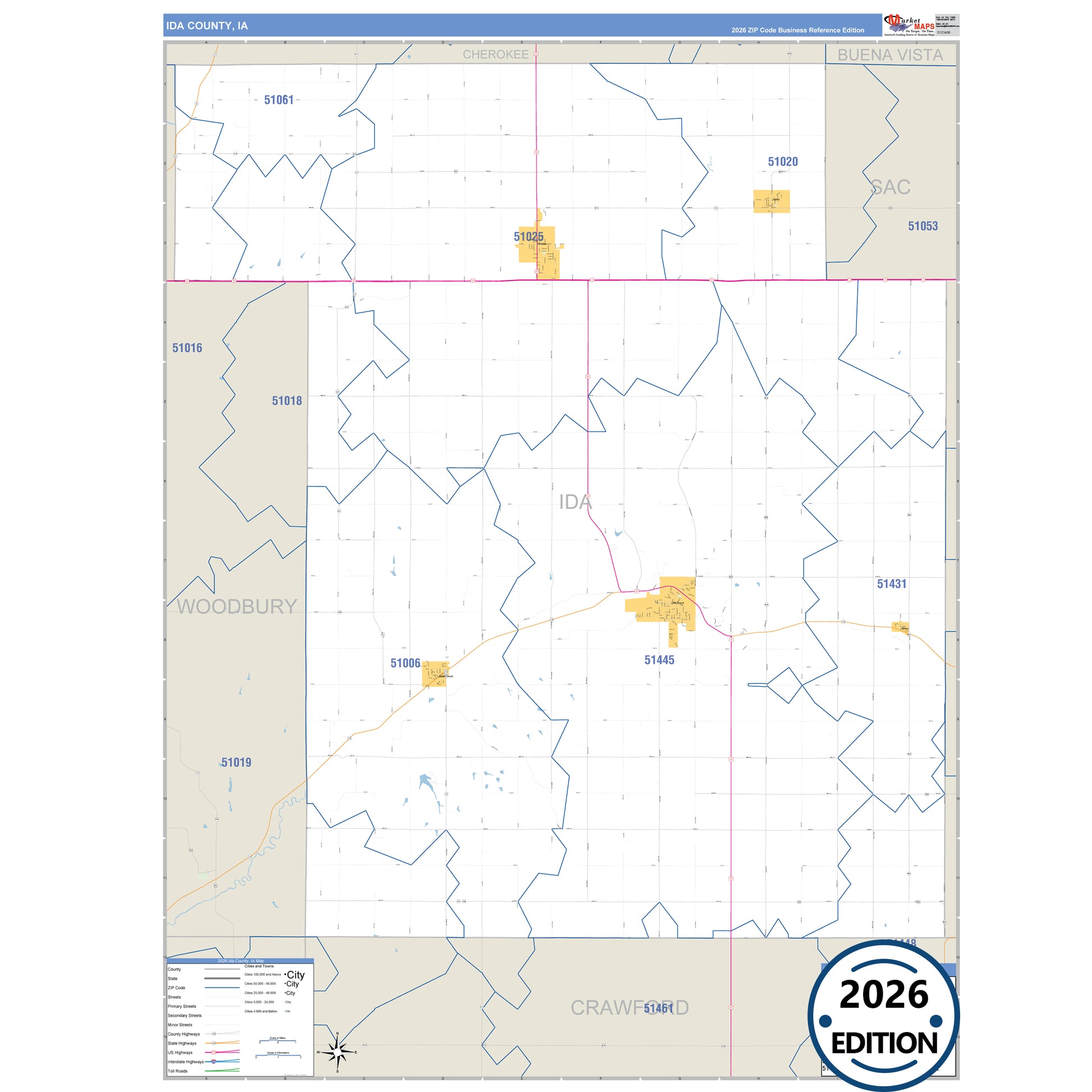 The Business Reference Style Ida County, IA is a detailed map that includes all towns, cities, major roadways, and highways. Available in multiple wall map sizes, perfect for home, school, office, or business display.