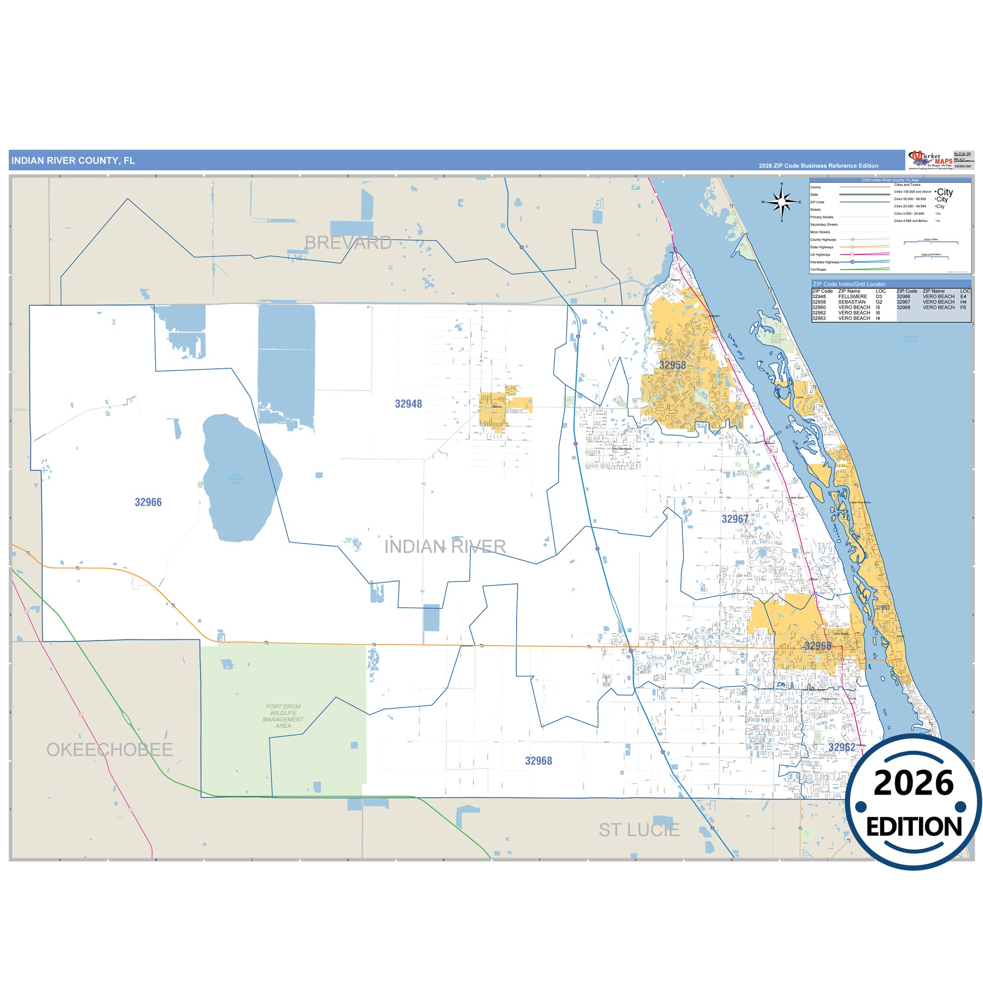 The Business Reference Style Indian River County, FL is a detailed map that includes all towns, cities, major roadways, and highways. Available in multiple wall map sizes, perfect for home, school, office, or business display.