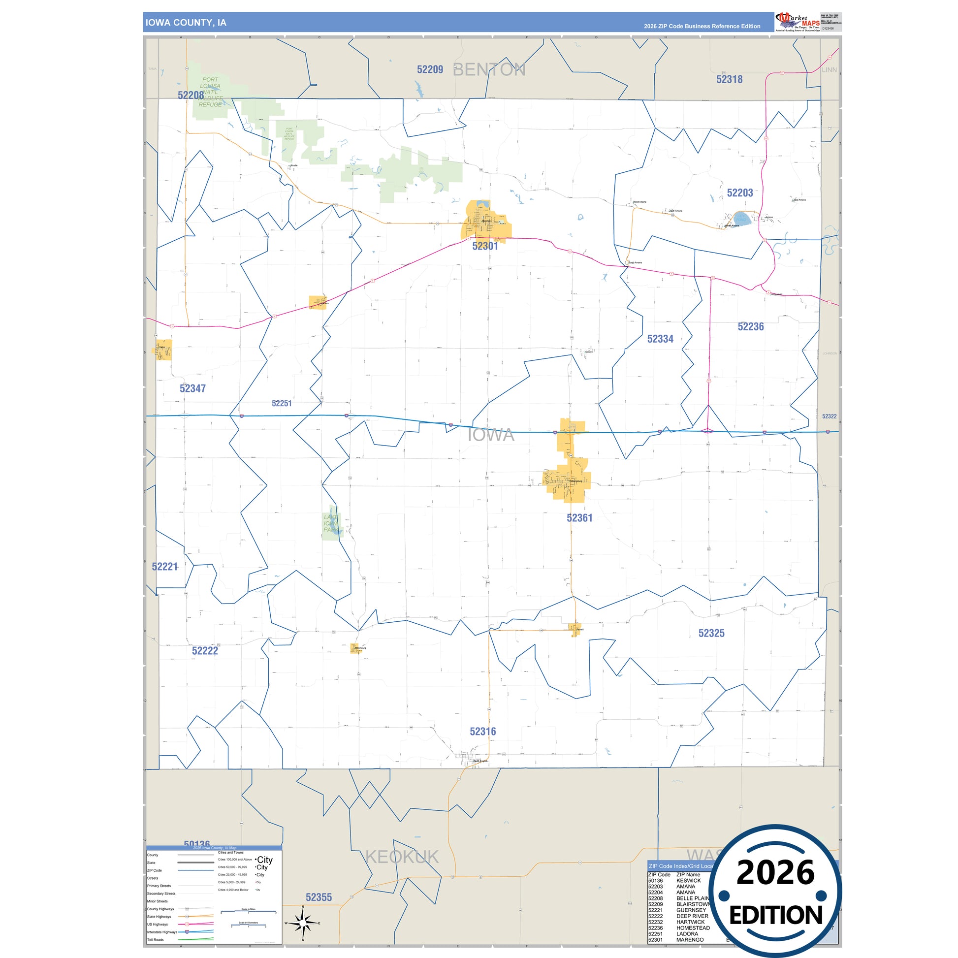 The Business Reference Style Iowa County, IA is a detailed map that includes all towns, cities, major roadways, and highways. Available in multiple wall map sizes, perfect for home, school, office, or business display.