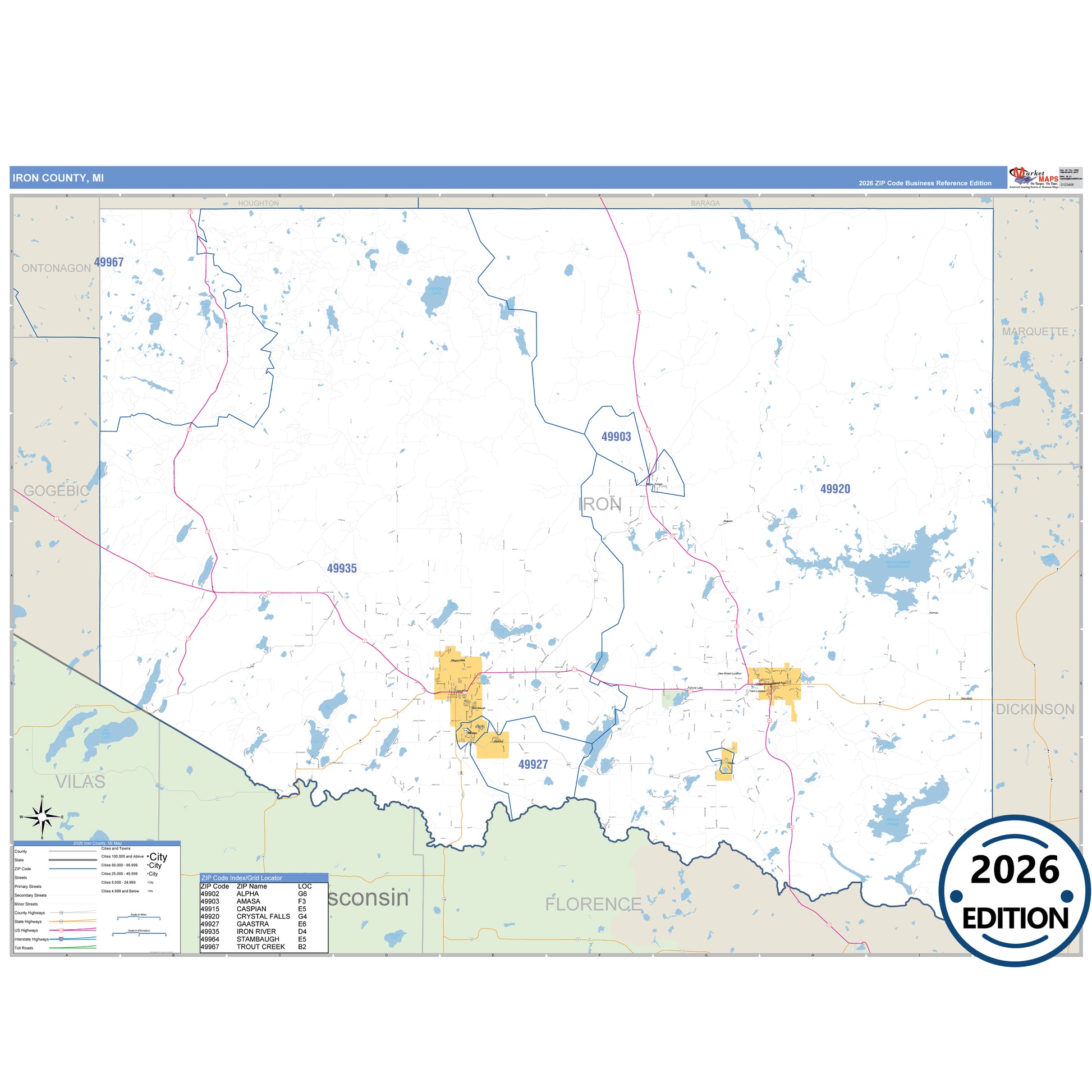 The Business Reference Style Iron County, MI is a detailed map that includes all towns, cities, major roadways, and highways. Available in multiple wall map sizes, perfect for home, school, office, or business display.