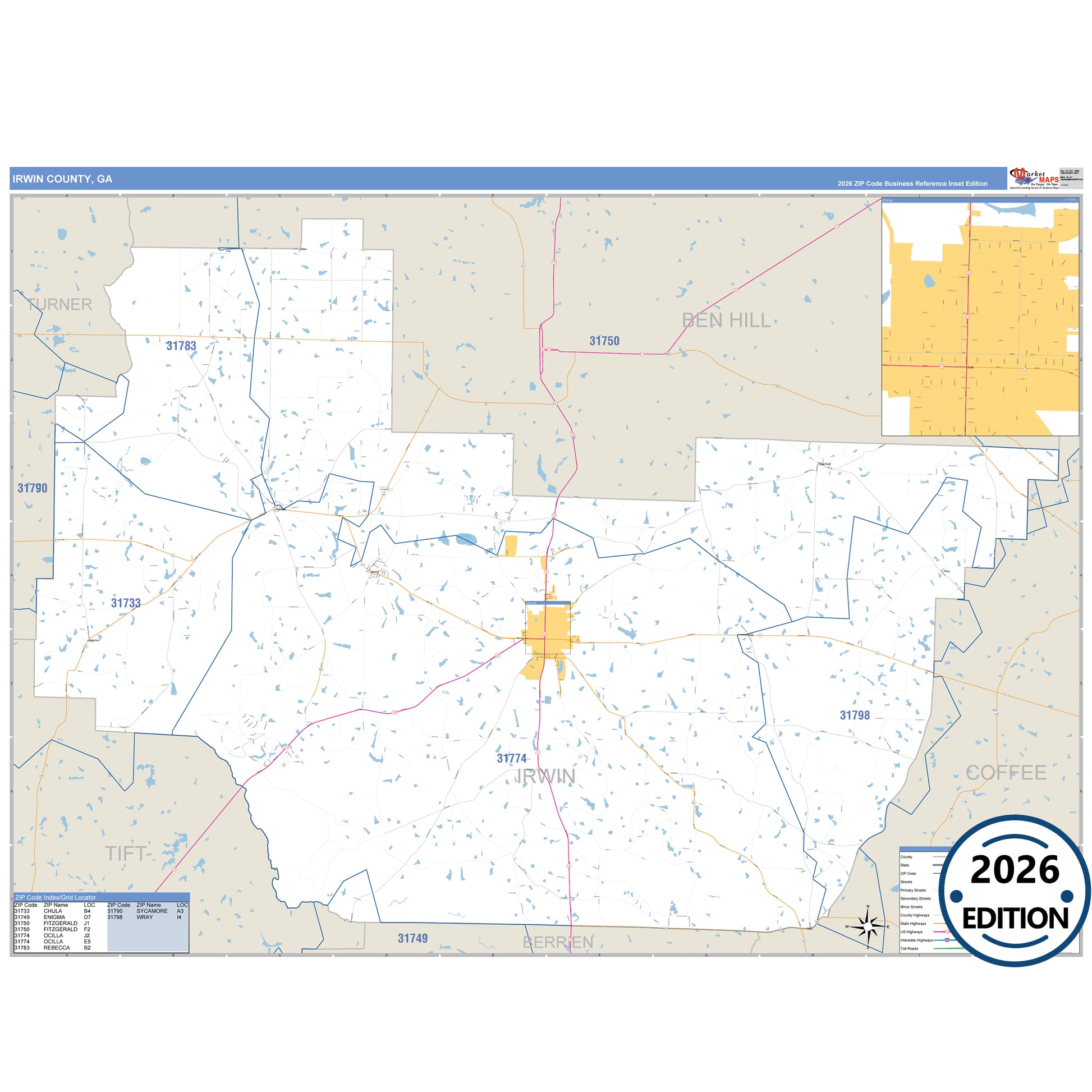 The Business Reference Style Irwin County, GA is a detailed map that includes all towns, cities, major roadways, and highways. Available in multiple wall map sizes, perfect for home, school, office, or business display.