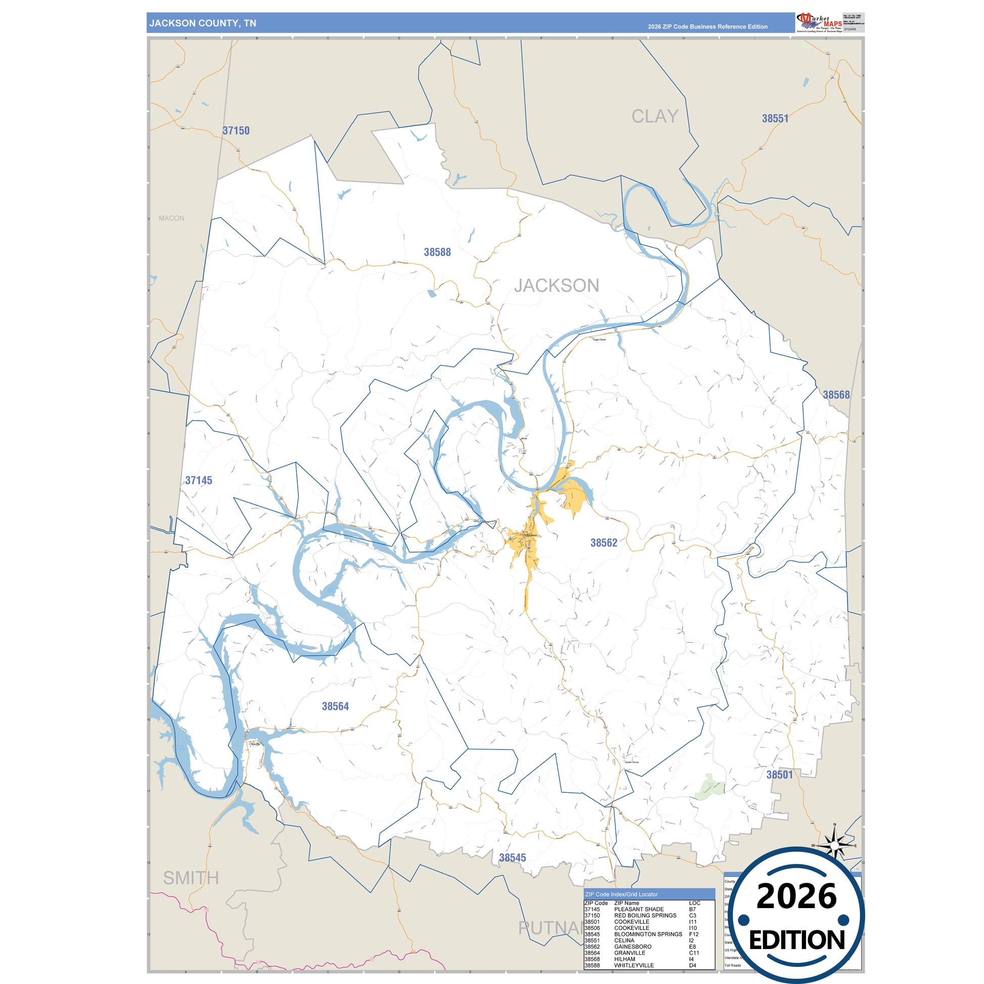 The Business Reference Style Jackson County, TN is a detailed map that includes all towns, cities, major roadways, and highways. Available in multiple wall map sizes, perfect for home, school, office, or business display.