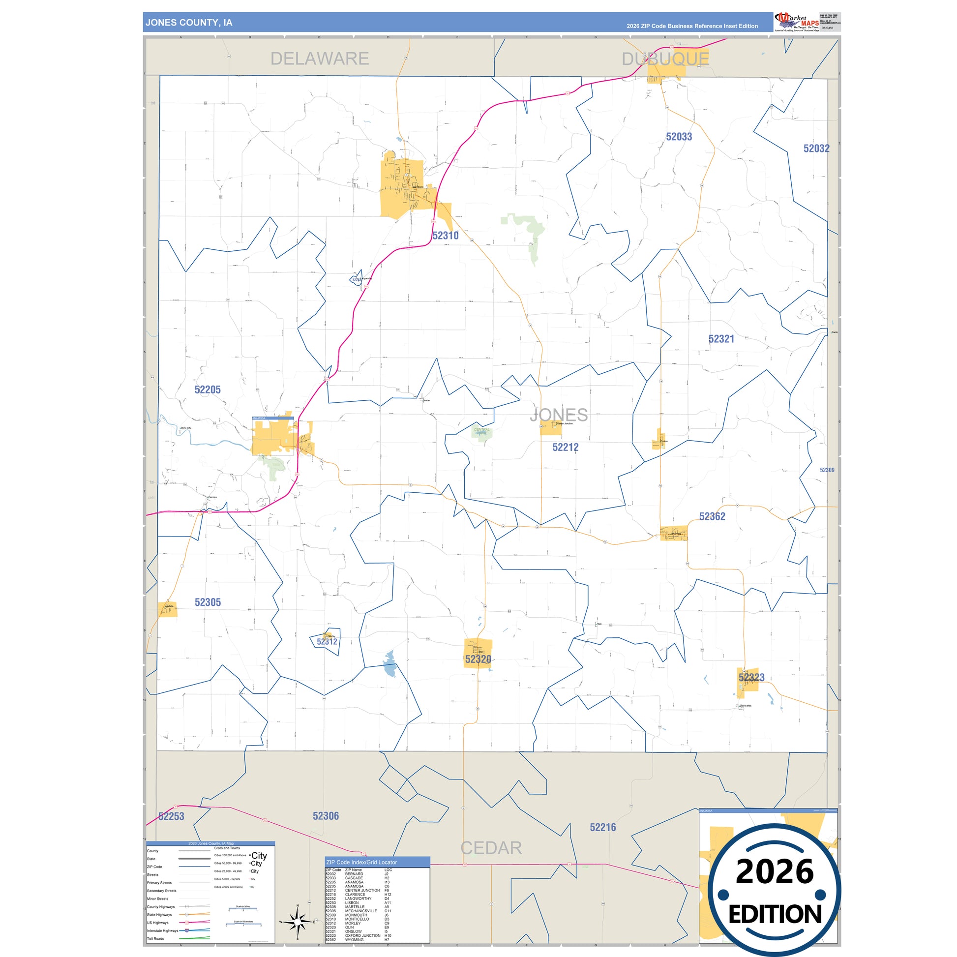 The Business Reference Style Jones County, IA is a detailed map that includes all towns, cities, major roadways, and highways. Available in multiple wall map sizes, perfect for home, school, office, or business display.