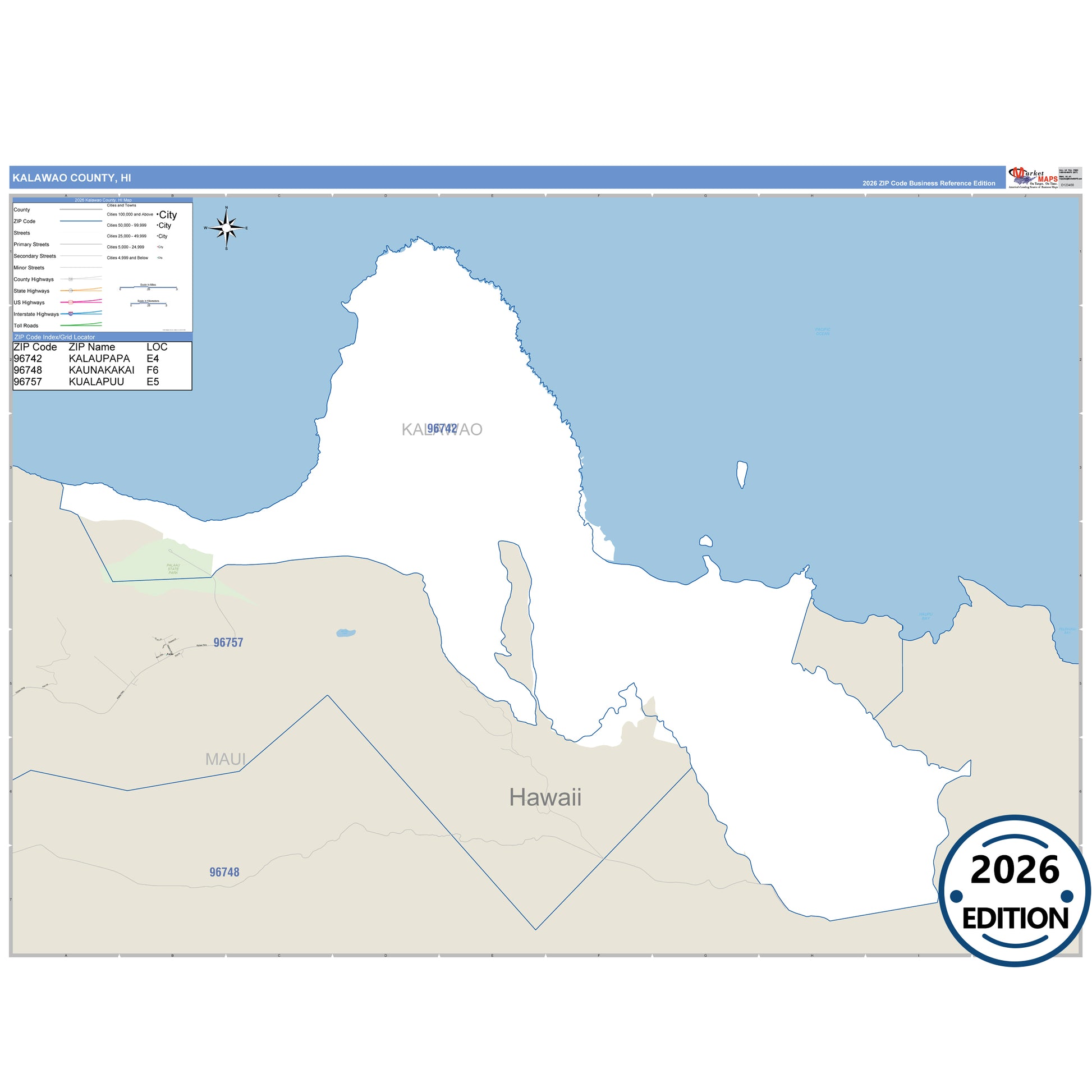 The Business Reference Style Kalawao County, HI is a detailed map that includes all towns, cities, major roadways, and highways. Available in multiple wall map sizes, perfect for home, school, office, or business display.