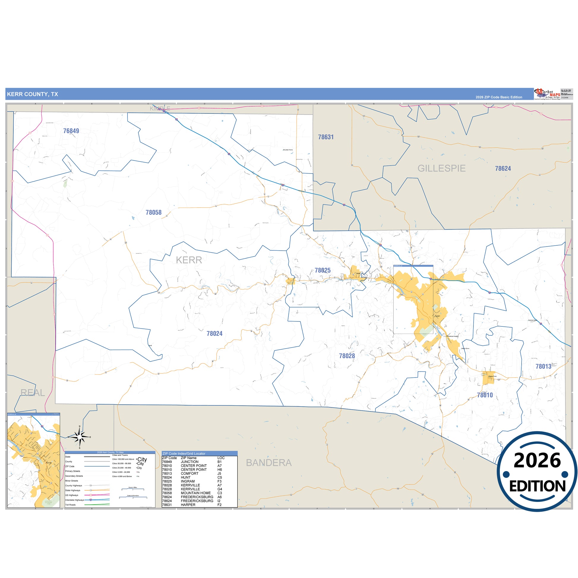 The Business Reference Style Kerr County, TX is a detailed map that includes all towns, cities, major roadways, and highways. Available in multiple wall map sizes, perfect for home, school, office, or business display.