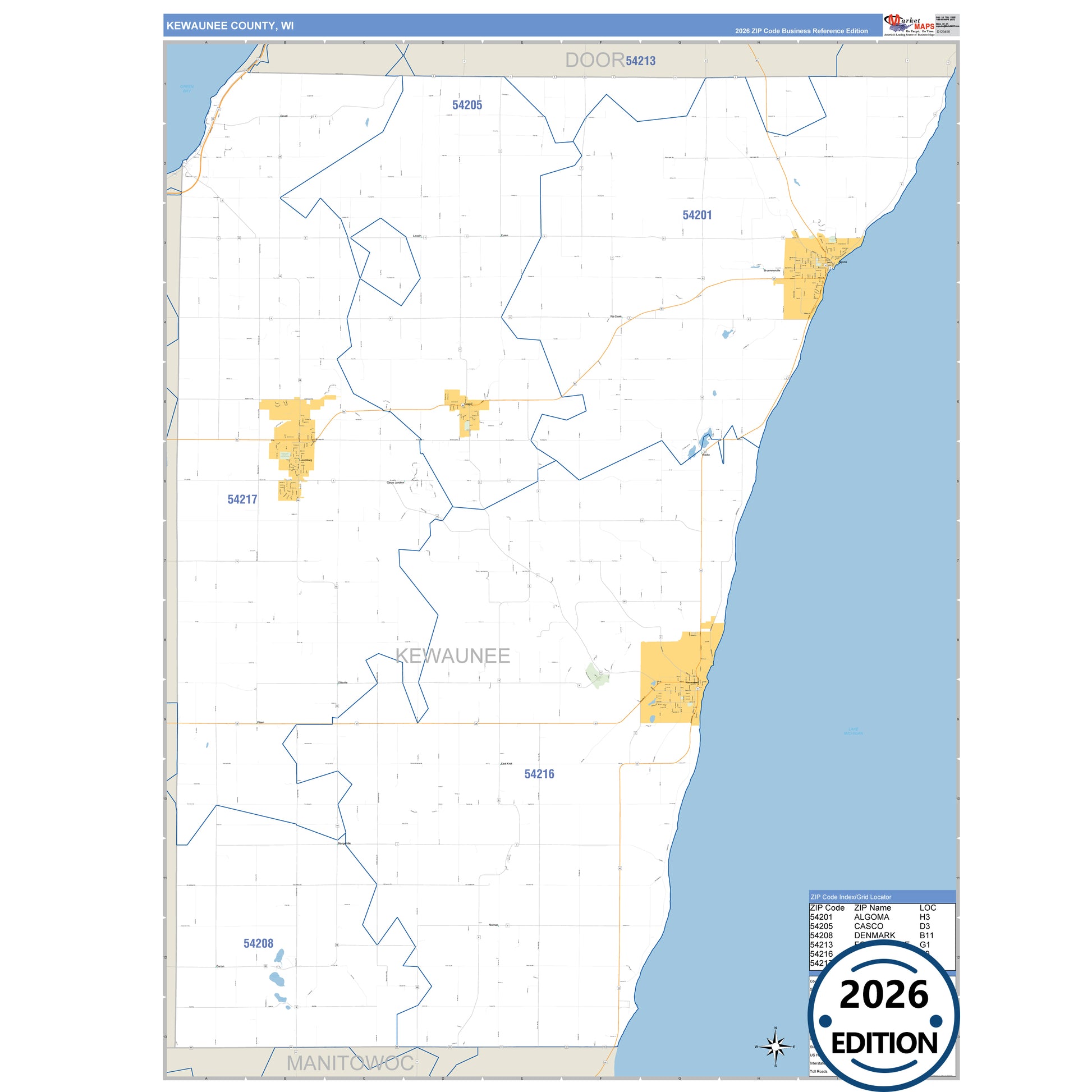 The Business Reference Style Kewaunee County, WI is a detailed map that includes all towns, cities, major roadways, and highways. Available in multiple wall map sizes, perfect for home, school, office, or business display.