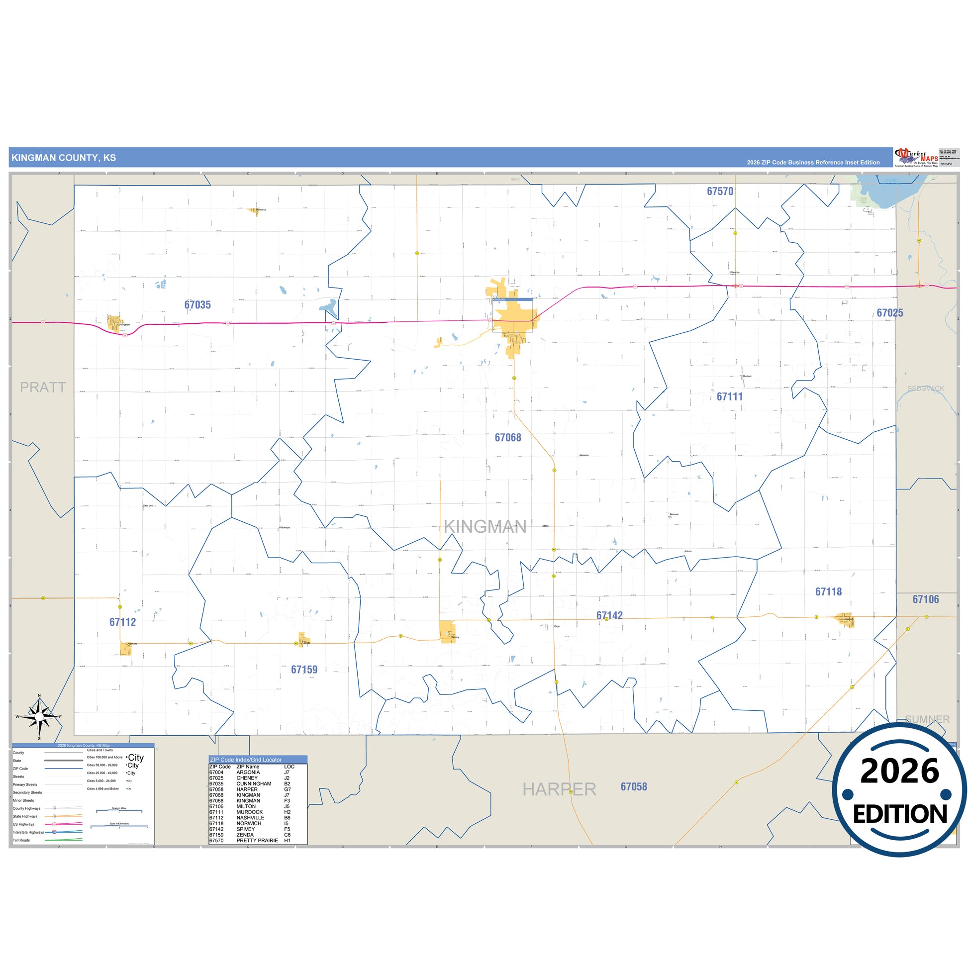 The Business Reference Style Kingman County, KS is a detailed map that includes all towns, cities, major roadways, and highways. Available in multiple wall map sizes, perfect for home, school, office, or business display.