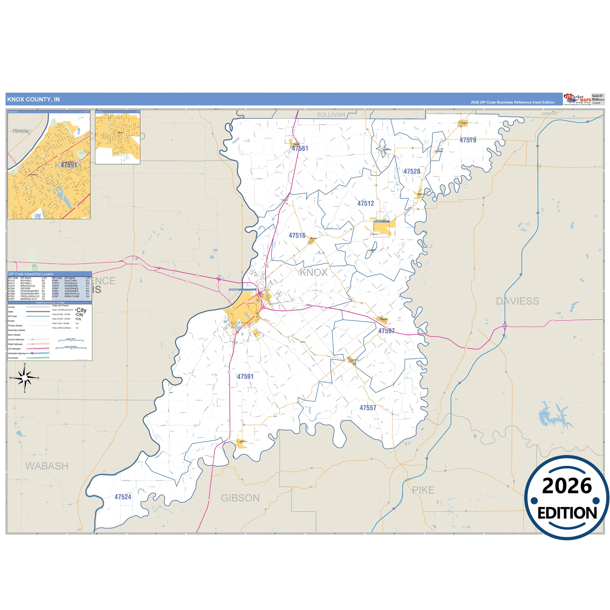 The Business Reference Style Knox County, IN is a detailed map that includes all towns, cities, major roadways, and highways. Available in multiple wall map sizes, perfect for home, school, office, or business display.