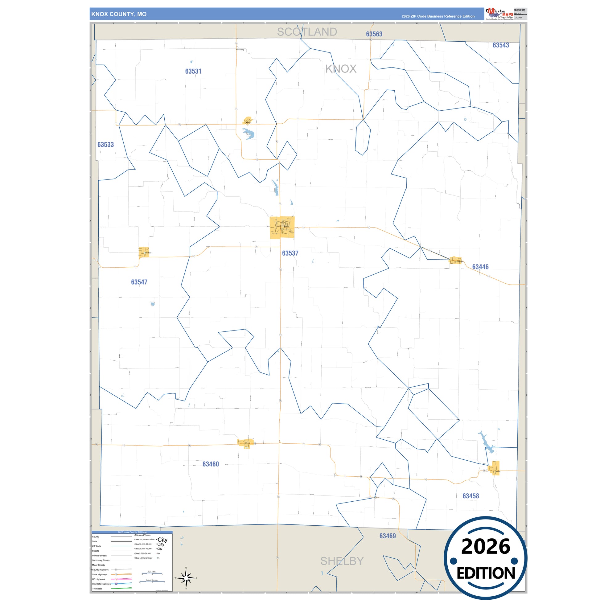 The Business Reference Style Knox County, MO is a detailed map that includes all towns, cities, major roadways, and highways. Available in multiple wall map sizes, perfect for home, school, office, or business display.