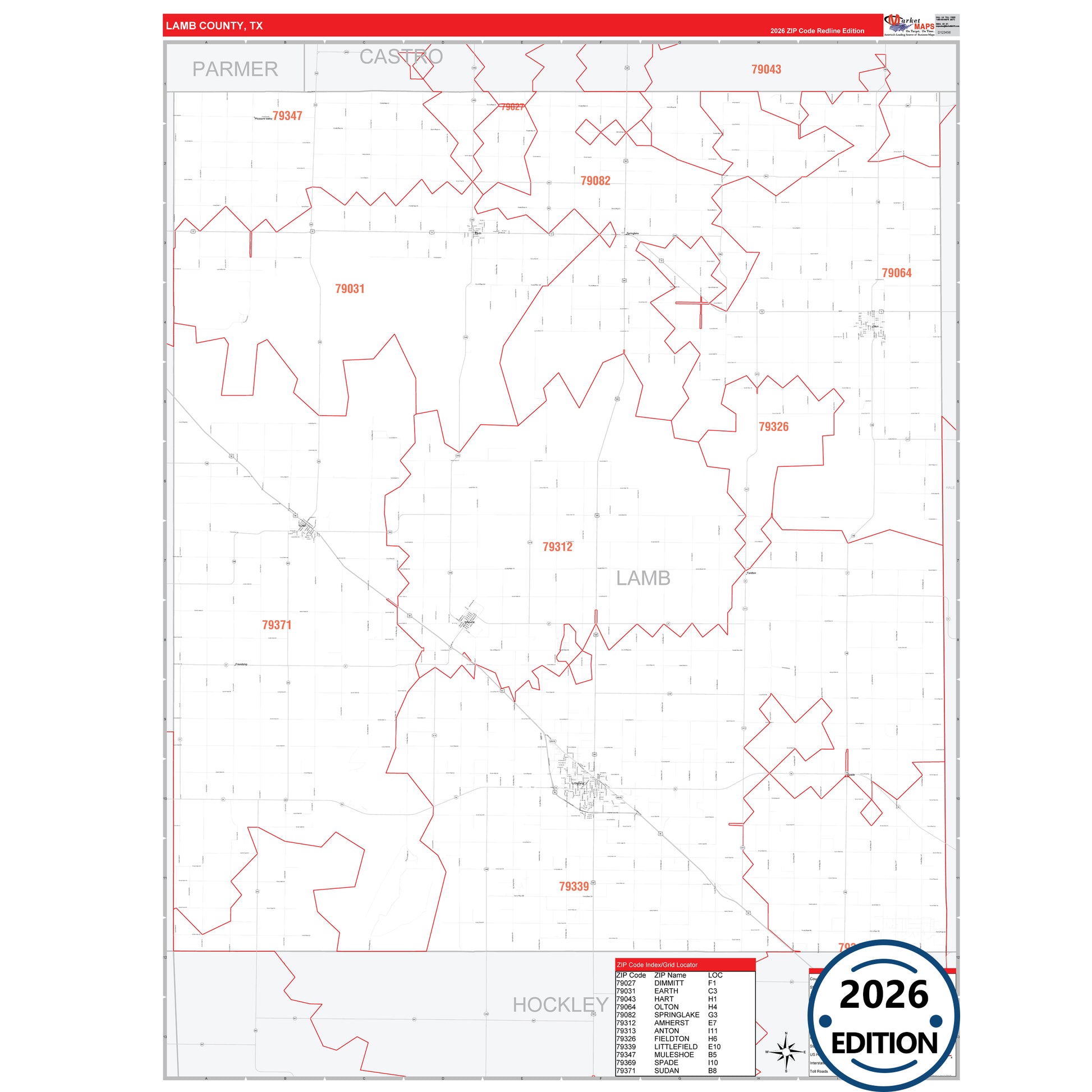The RedLine Style map of Lamar County, TX shows ZIP code areas overlaid on a detailed road network of Lamar County, Texas. Ideal for drawing locations, territories, and other applications. Base map features include all major streets and highways labeled, cities and towns, county and state boundaries, neighborhood names, railroads, and a clean white background suitable for marking and planning.