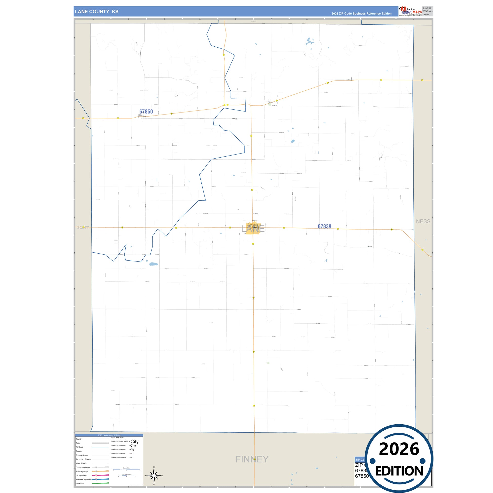The Business Reference Style Lane County, KS is a detailed map that includes all towns, cities, major roadways, and highways. Available in multiple wall map sizes, perfect for home, school, office, or business display.