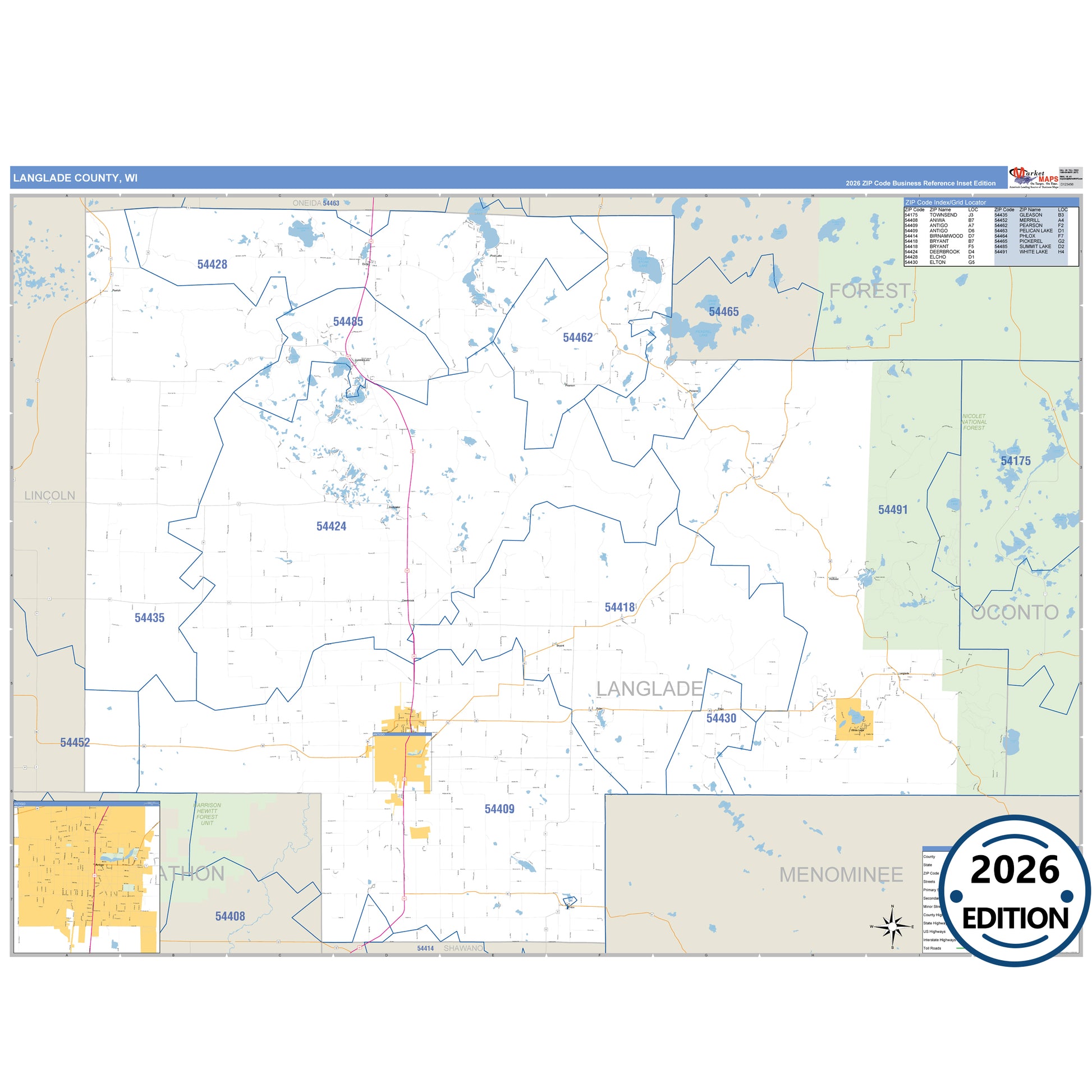 The Business Reference Style Langlade County, WI is a detailed map that includes all towns, cities, major roadways, and highways. Available in multiple wall map sizes, perfect for home, school, office, or business display.