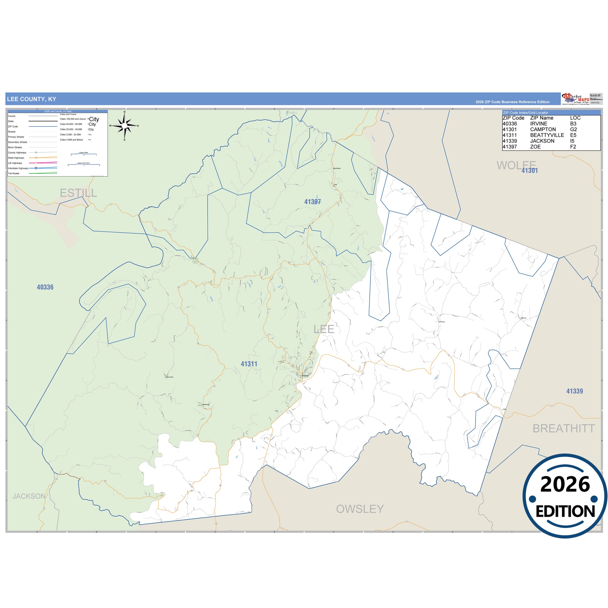 The Business Reference Style Lee County, KY is a detailed map that includes all towns, cities, major roadways, and highways. Available in multiple wall map sizes, perfect for home, school, office, or business display.