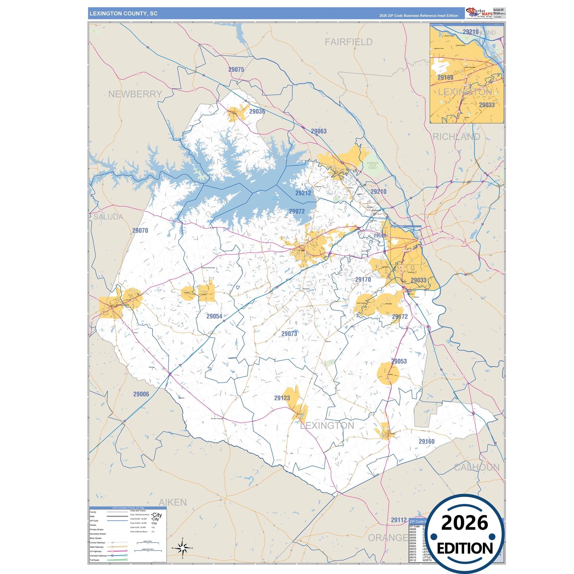 The Business Reference Style Lexington County, SC is a detailed map that includes all towns, cities, major roadways, and highways. Available in multiple wall map sizes, perfect for home, school, office, or business display.