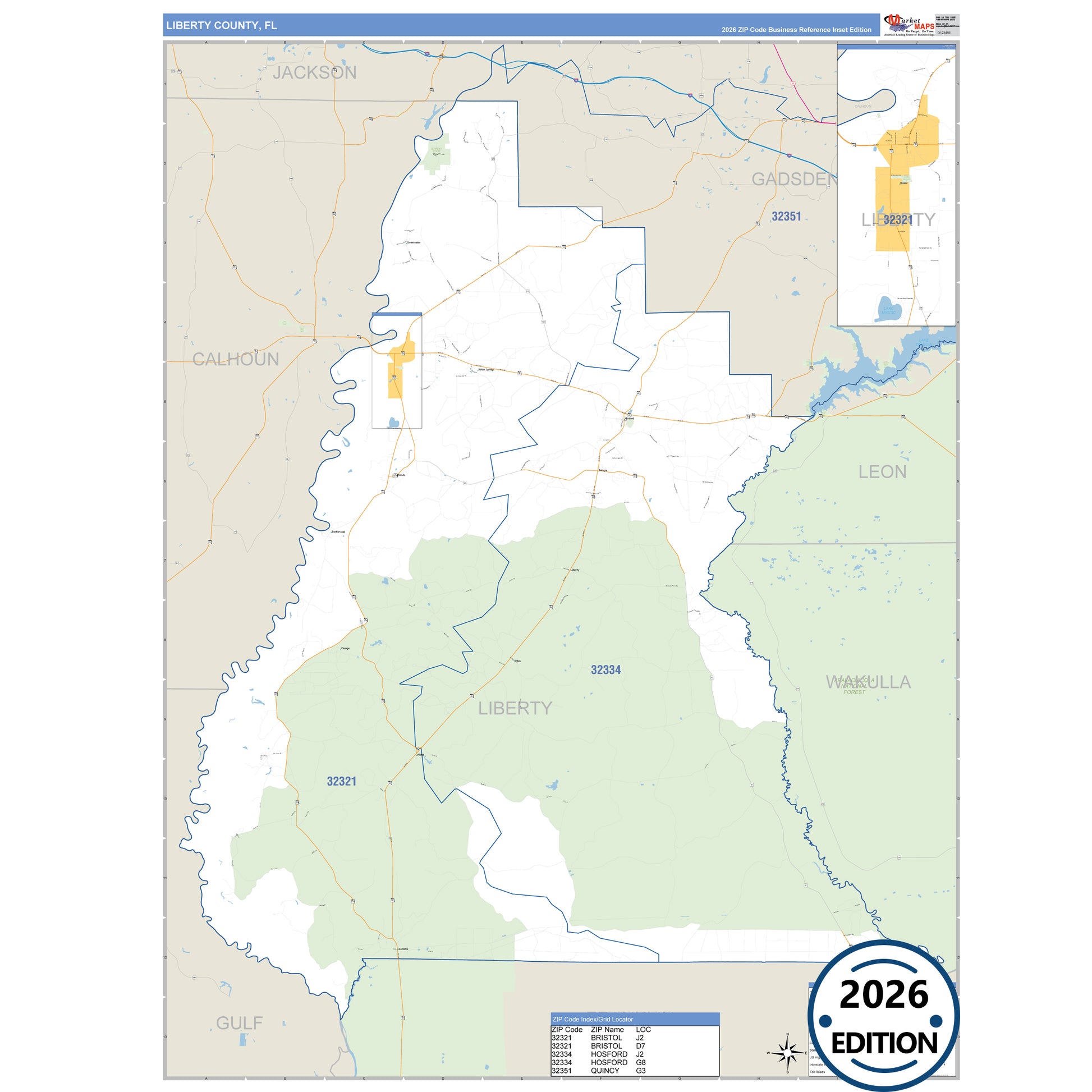 The Business Reference Style Liberty County, FL is a detailed map that includes all towns, cities, major roadways, and highways. Available in multiple wall map sizes, perfect for home, school, office, or business display.