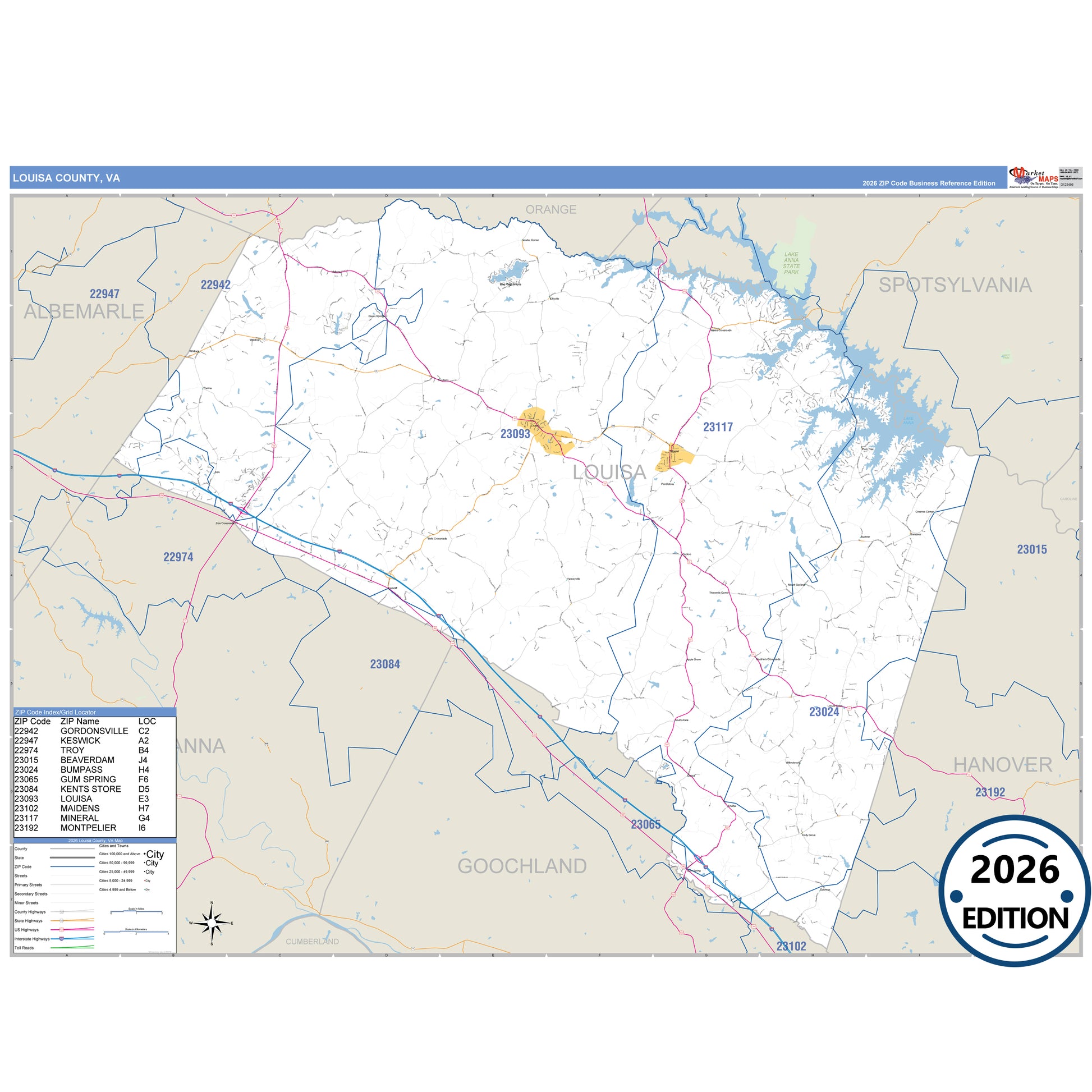 The Business Reference Style Louisa County, VA is a detailed map that includes all towns, cities, major roadways, and highways. Available in multiple wall map sizes, perfect for home, school, office, or business display.