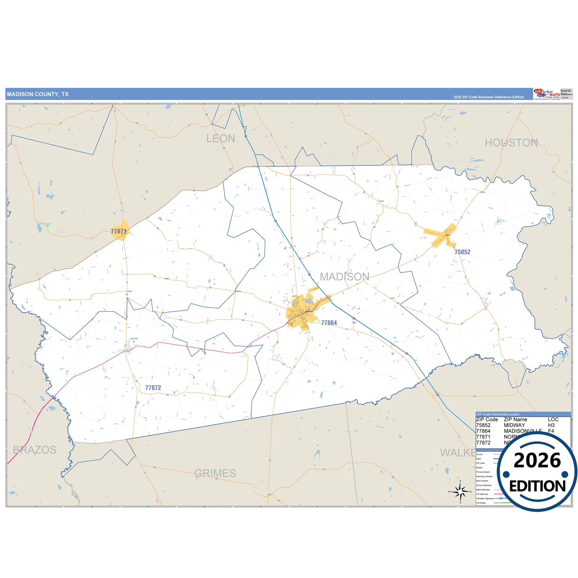 The Business Reference Style Madison County, TX is a detailed map that includes all towns, cities, major roadways, and highways. Available in multiple wall map sizes, perfect for home, school, office, or business display.