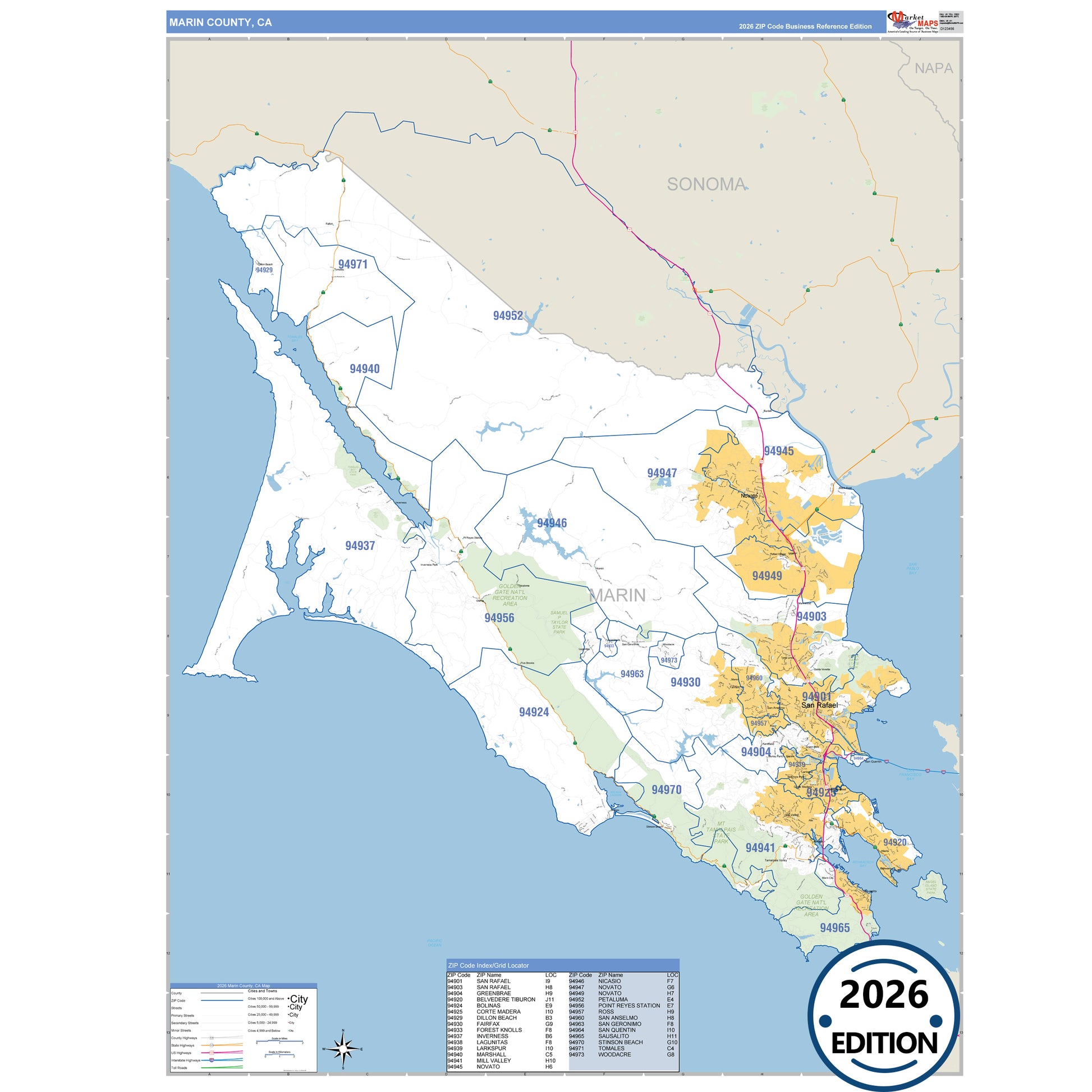 The Business Reference Style Marin County, CA is a detailed map that includes all towns, cities, major roadways, and highways. Available in multiple wall map sizes, perfect for home, school, office, or business display.