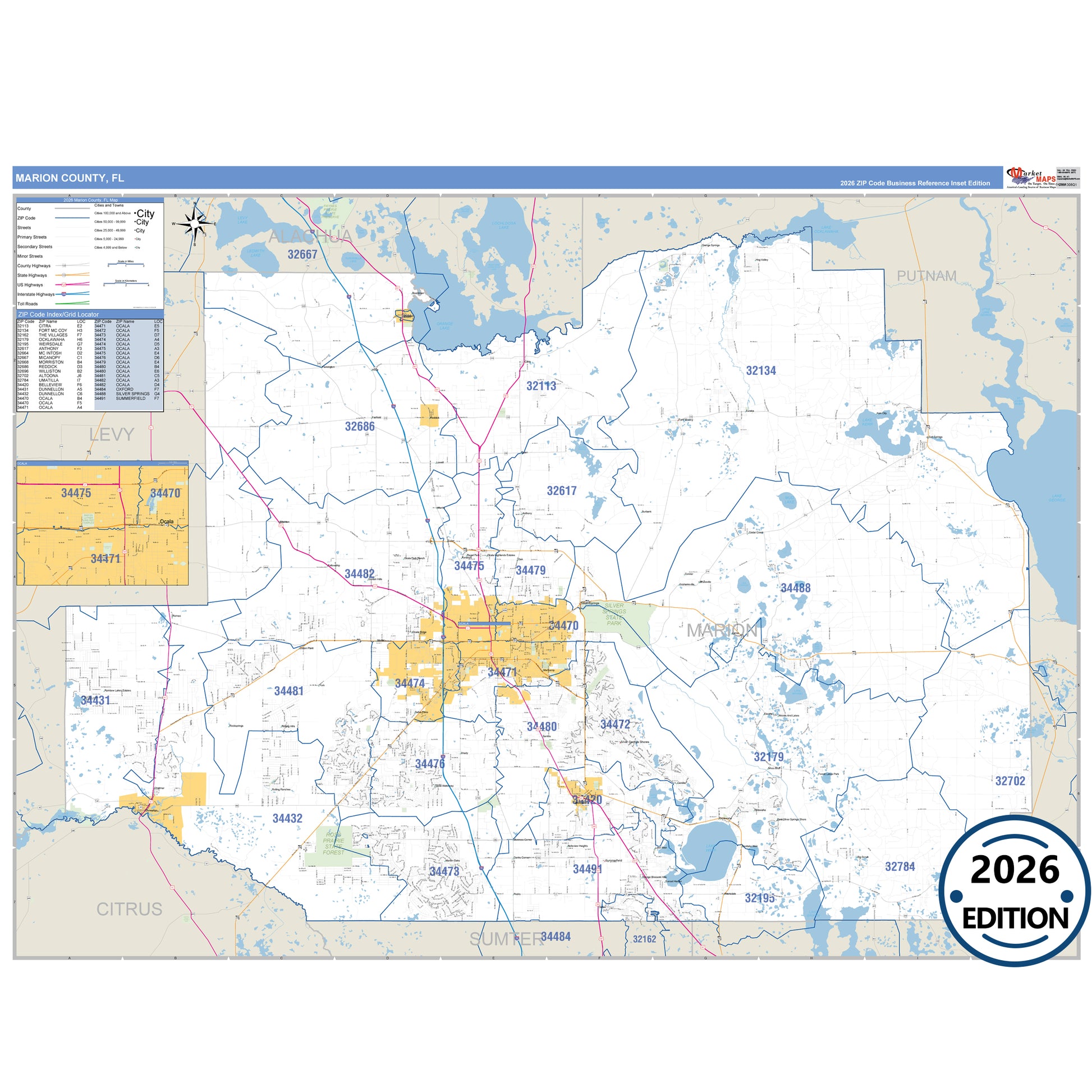 The Business Reference Style Marion County, FL is a detailed map that includes all towns, cities, major roadways, and highways. Available in multiple wall map sizes, perfect for home, school, office, or business display.