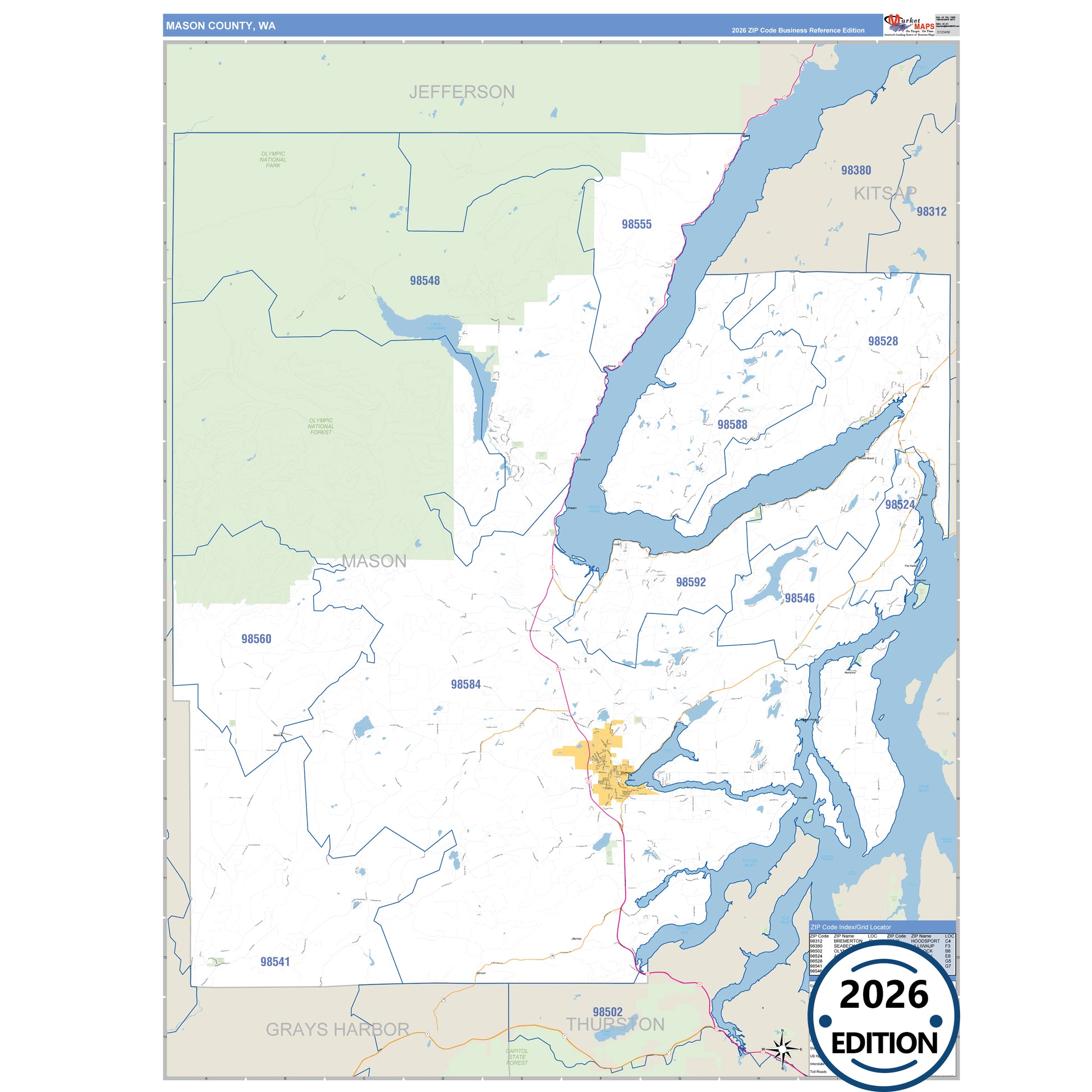 The Business Reference Style Mason County, WA is a detailed map that includes all towns, cities, major roadways, and highways. Available in multiple wall map sizes, perfect for home, school, office, or business display.