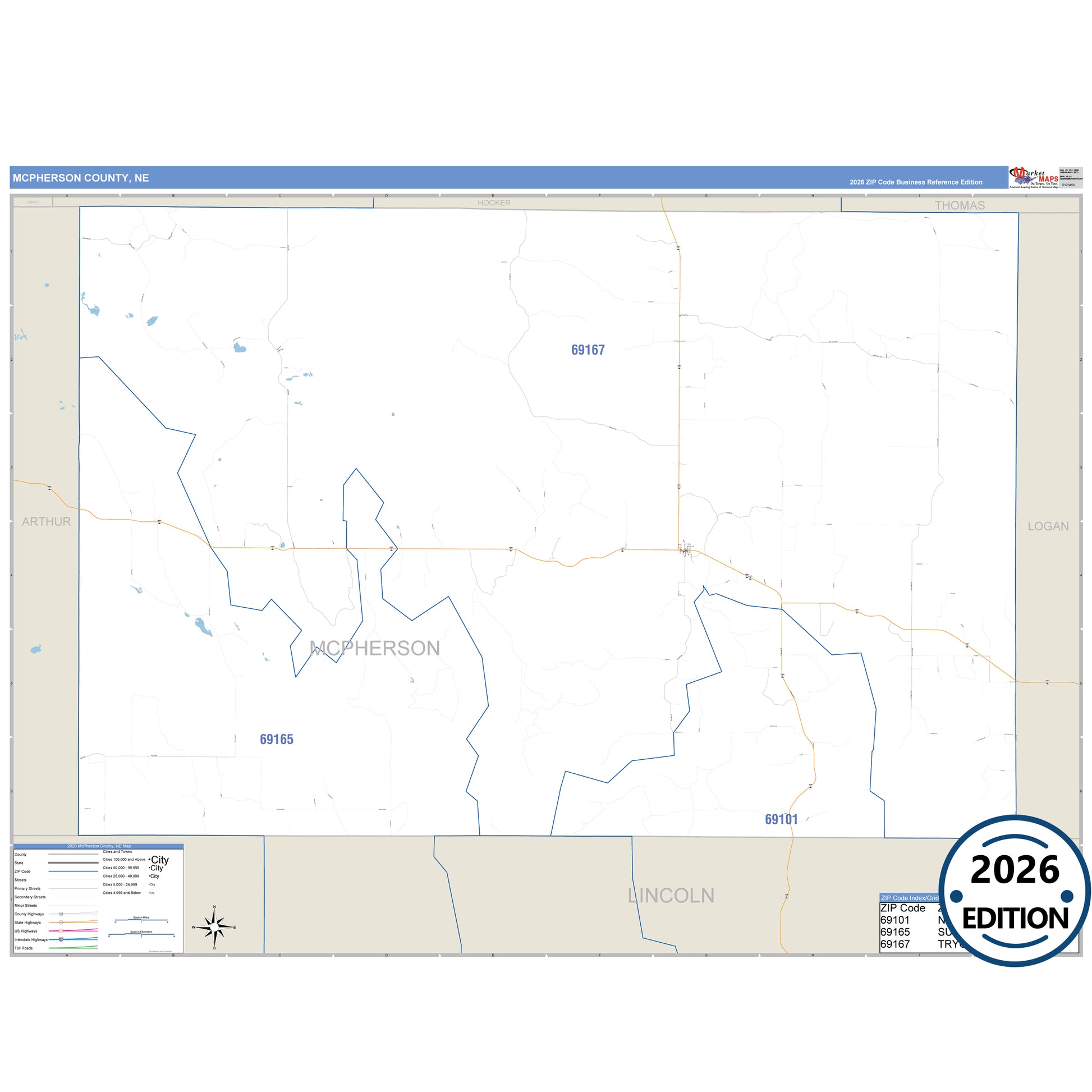 The Business Reference Style McPherson County, NE is a detailed map that includes all towns, cities, major roadways, and highways. Available in multiple wall map sizes, perfect for home, school, office, or business display.