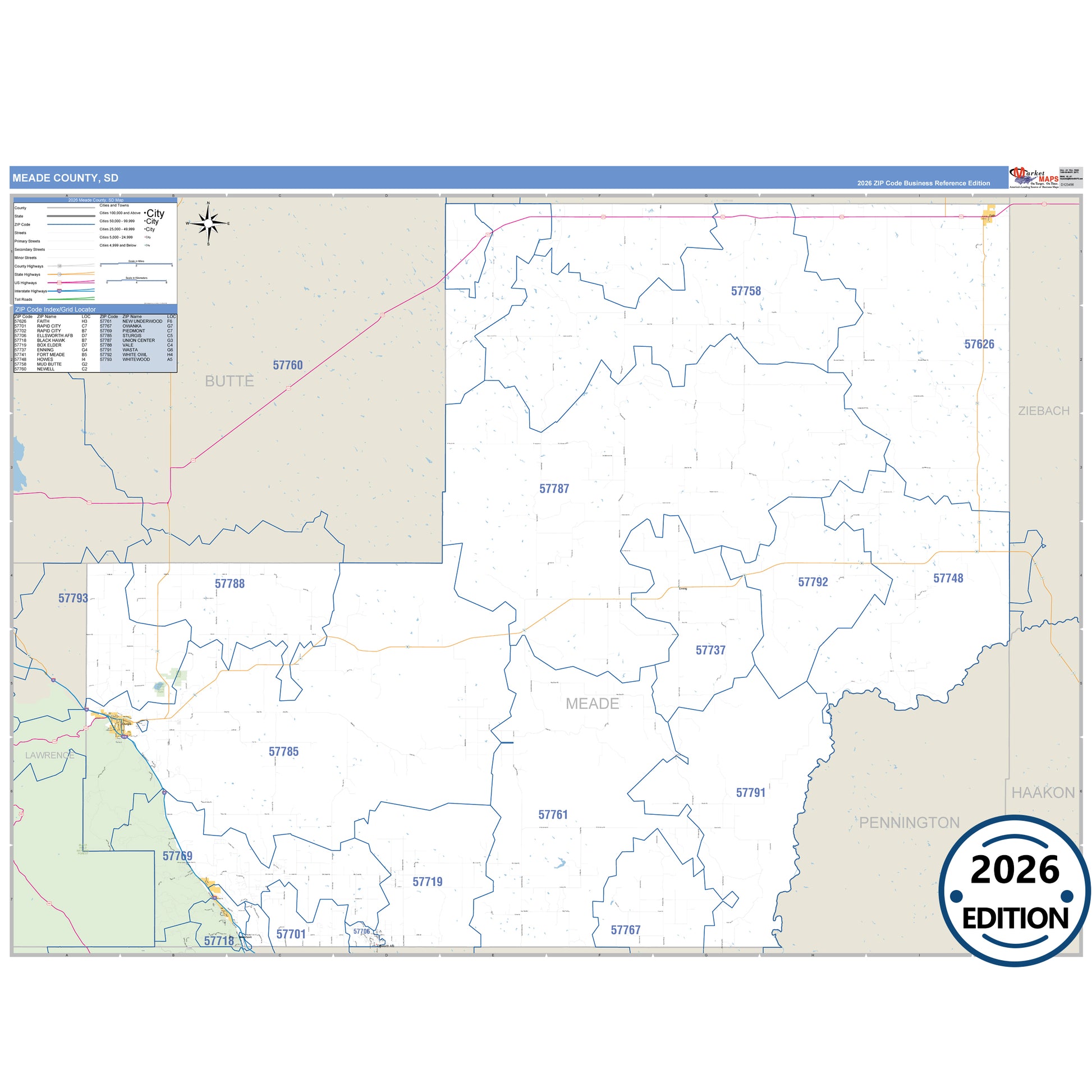 The Business Reference Style Meade County, SD is a detailed map that includes all towns, cities, major roadways, and highways. Available in multiple wall map sizes, perfect for home, school, office, or business display.