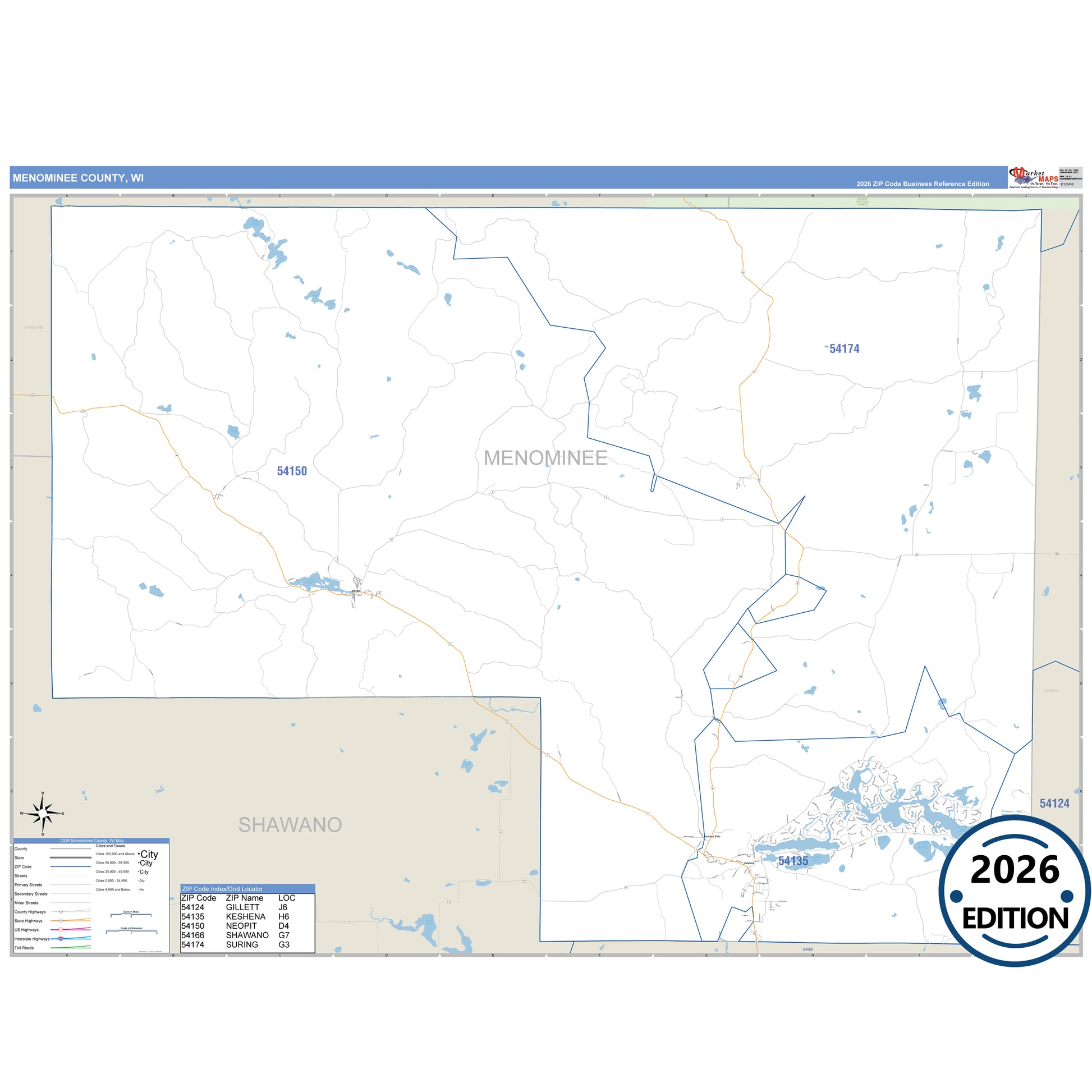 The Business Reference Style Menominee County, WI is a detailed map that includes all towns, cities, major roadways, and highways. Available in multiple wall map sizes, perfect for home, school, office, or business display.