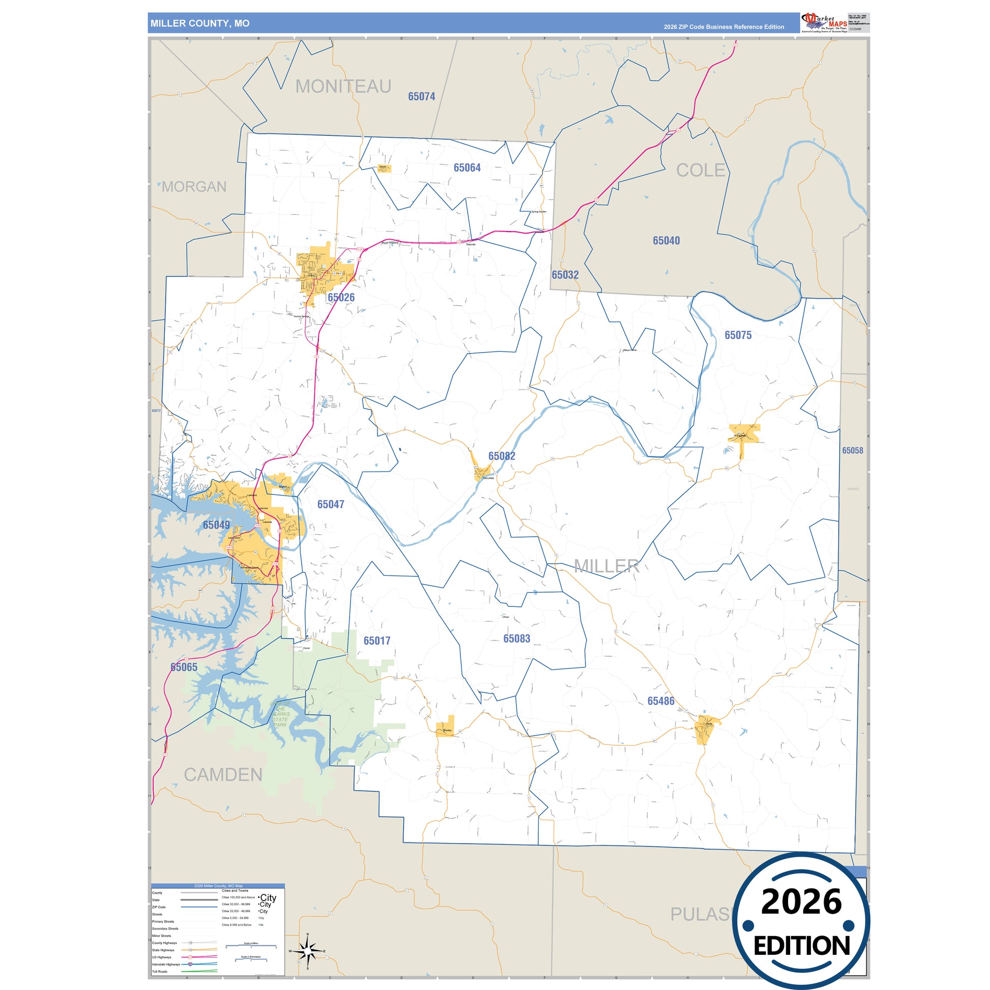 The Business Reference Style Miller County, MO is a detailed map that includes all towns, cities, major roadways, and highways. Available in multiple wall map sizes, perfect for home, school, office, or business display.