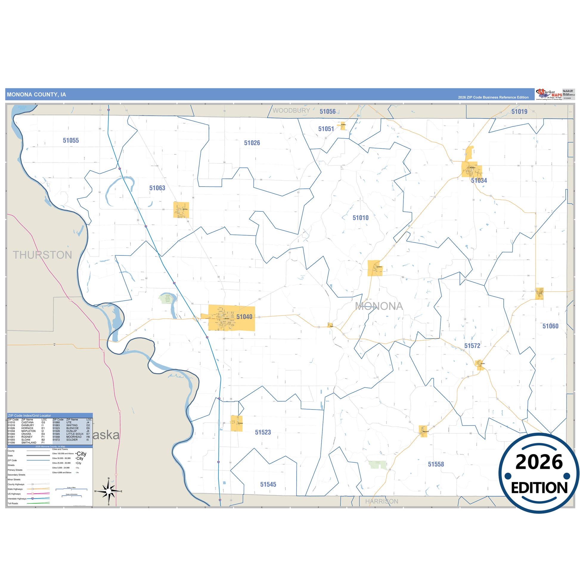 The Business Reference Style Monona County, IA is a detailed map that includes all towns, cities, major roadways, and highways. Available in multiple wall map sizes, perfect for home, school, office, or business display.
