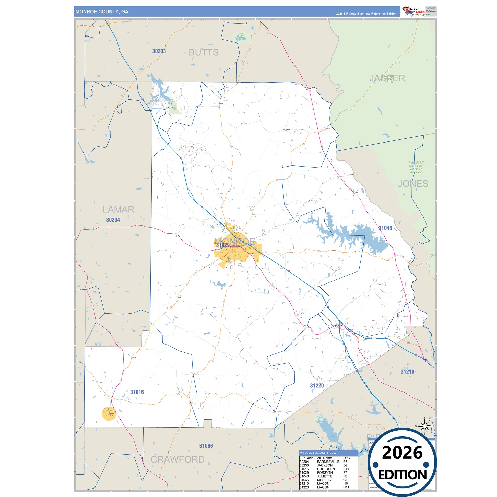 The Business Reference Style Monroe County, GA is a detailed map that includes all towns, cities, major roadways, and highways. Available in multiple wall map sizes, perfect for home, school, office, or business display.