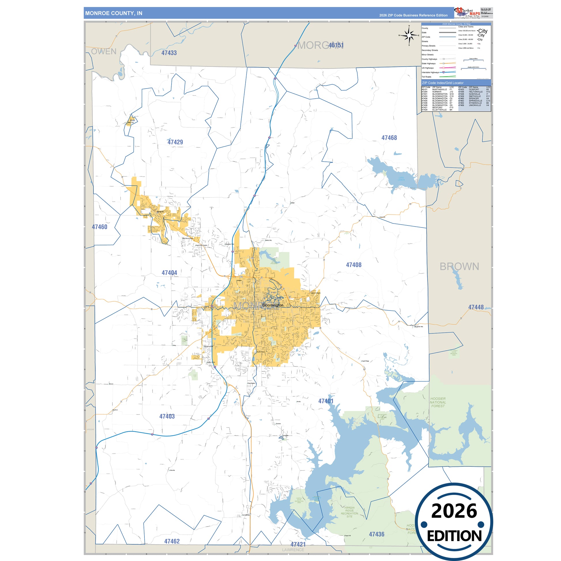 The Business Reference Style Monroe County, IN is a detailed map that includes all towns, cities, major roadways, and highways. Available in multiple wall map sizes, perfect for home, school, office, or business display.