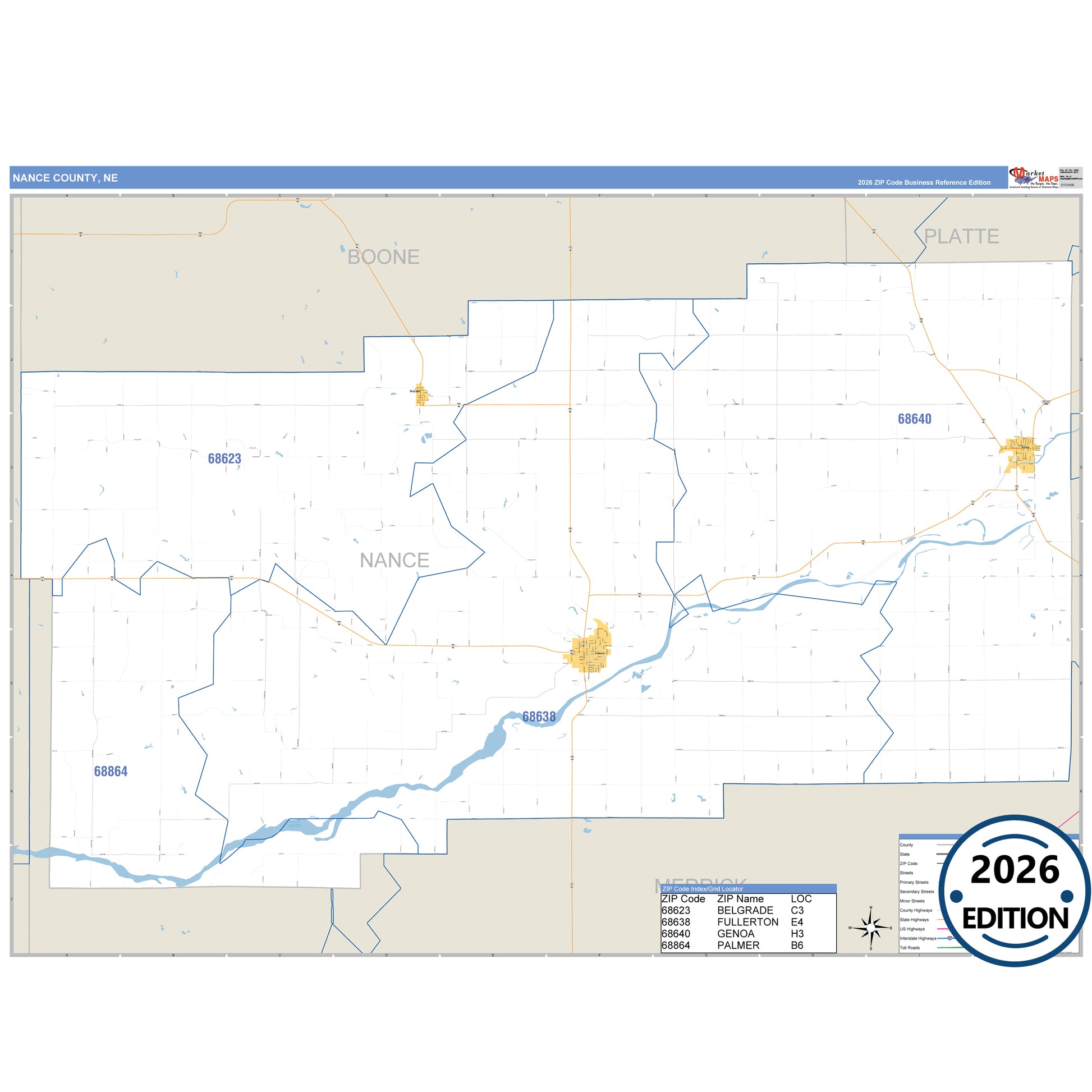 The Business Reference Style Nance County, NE is a detailed map that includes all towns, cities, major roadways, and highways. Available in multiple wall map sizes, perfect for home, school, office, or business display.