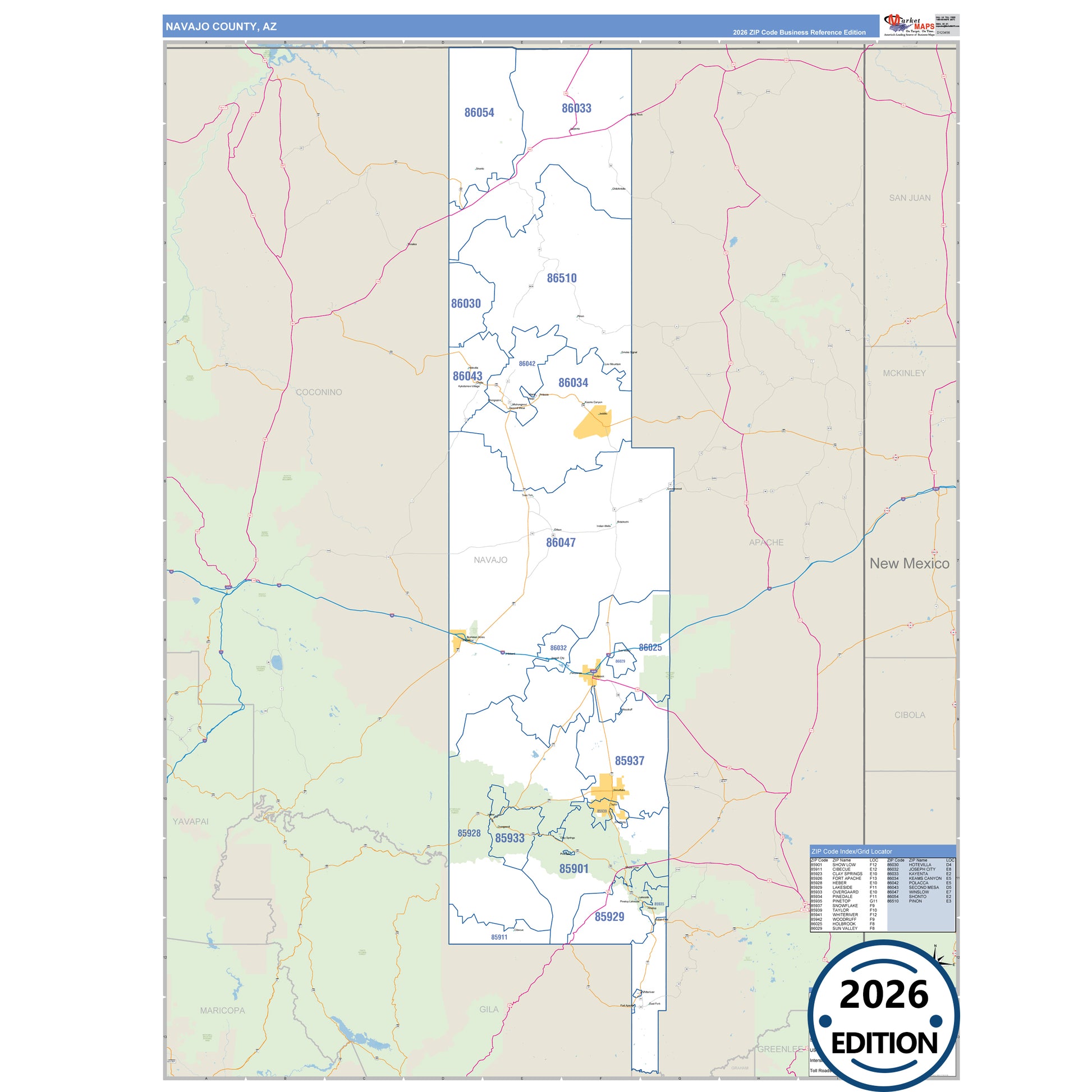 The Business Reference Style Navajo County, AZ is a detailed map that includes all towns, cities, major roadways, and highways. Available in multiple wall map sizes, perfect for home, school, office, or business display.