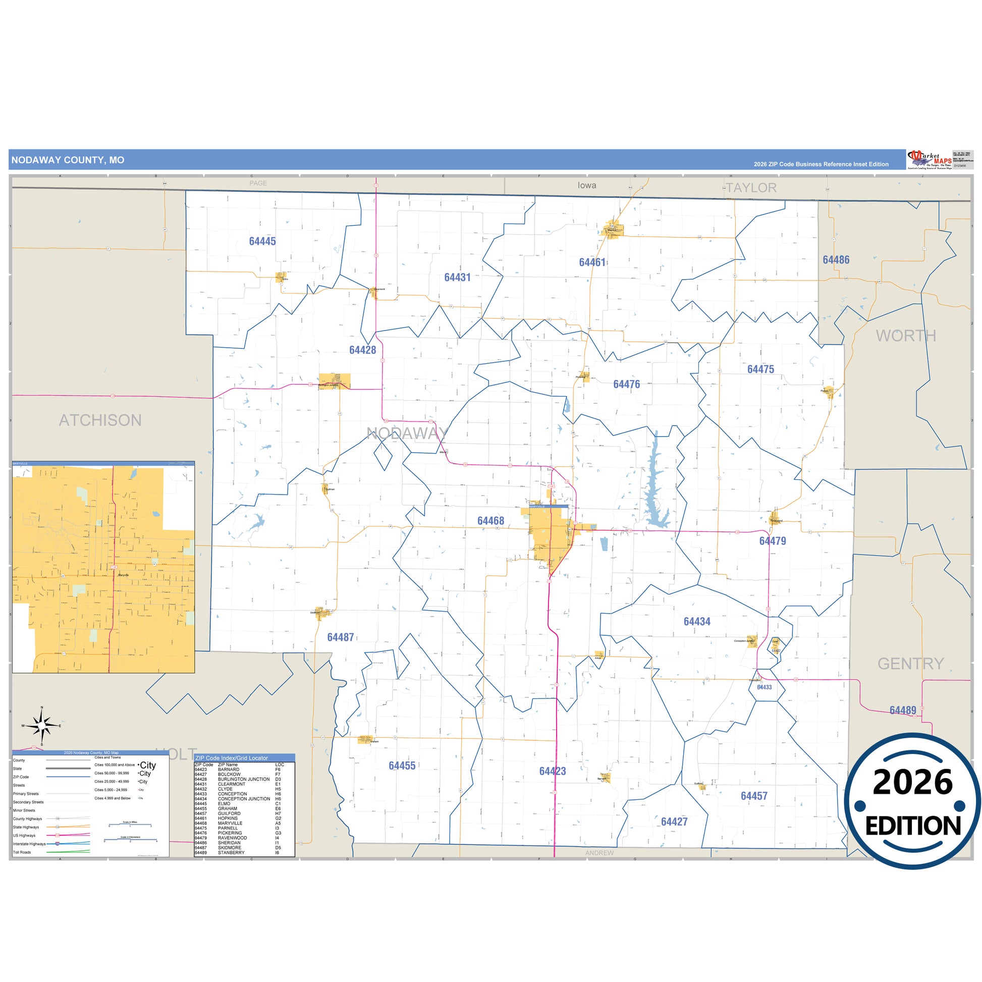 The Business Reference Style Nodaway County, MO is a detailed map that includes all towns, cities, major roadways, and highways. Available in multiple wall map sizes, perfect for home, school, office, or business display.