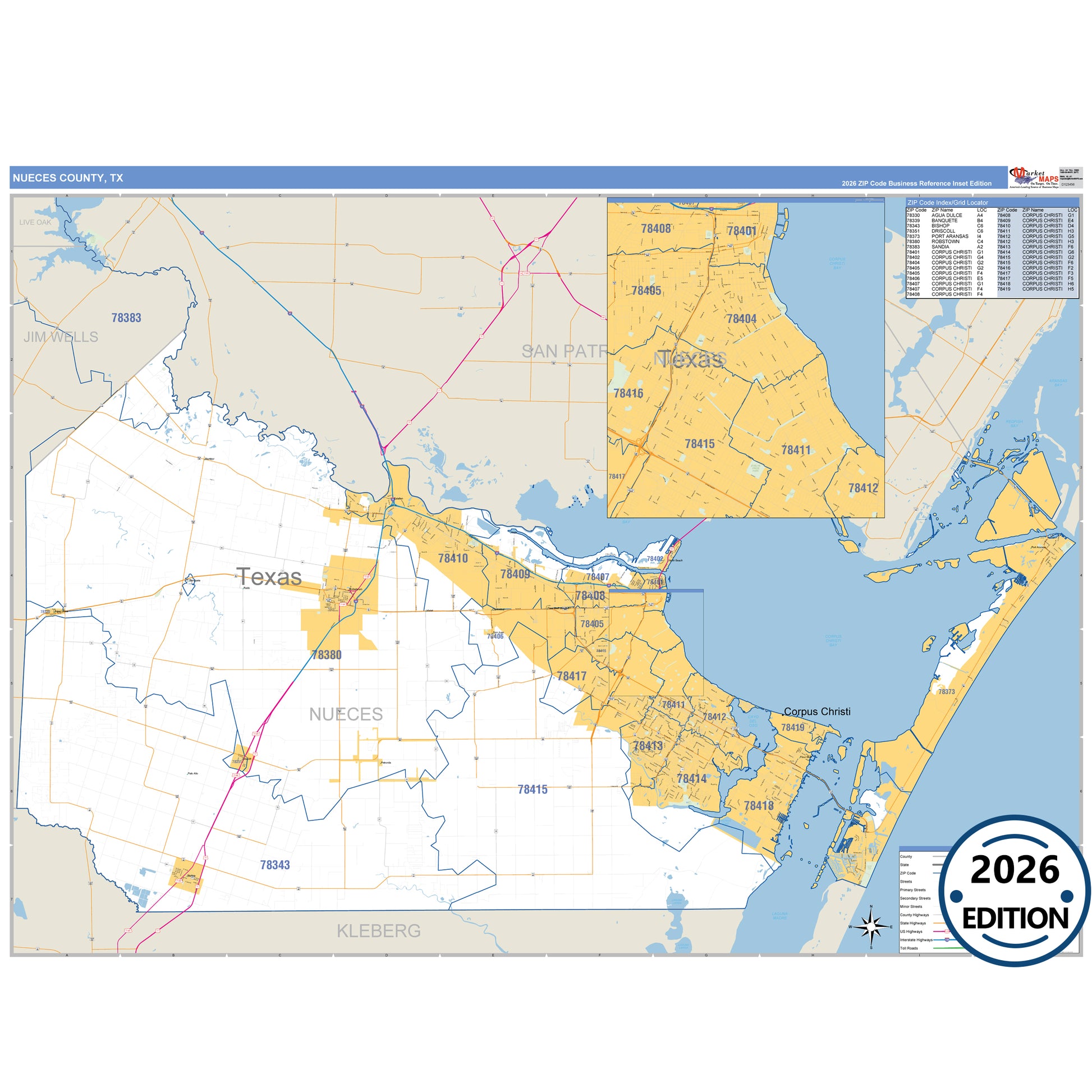 The Business Reference Style Nueces County, TX is a detailed map that includes all towns, cities, major roadways, and highways. Available in multiple wall map sizes, perfect for home, school, office, or business display.