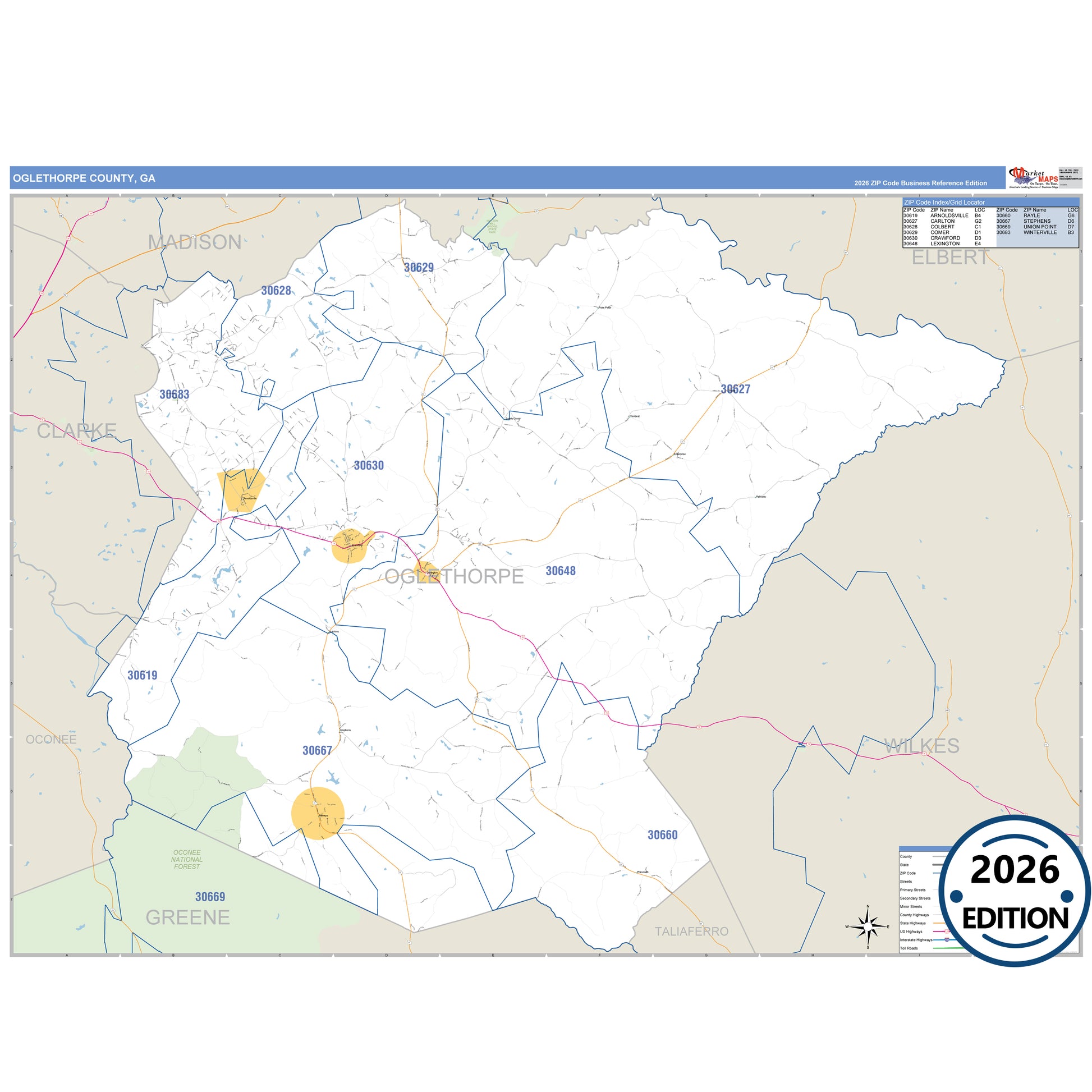 The Business Reference Style Oglethorpe County, GA is a detailed map that includes all towns, cities, major roadways, and highways. Available in multiple wall map sizes, perfect for home, school, office, or business display.