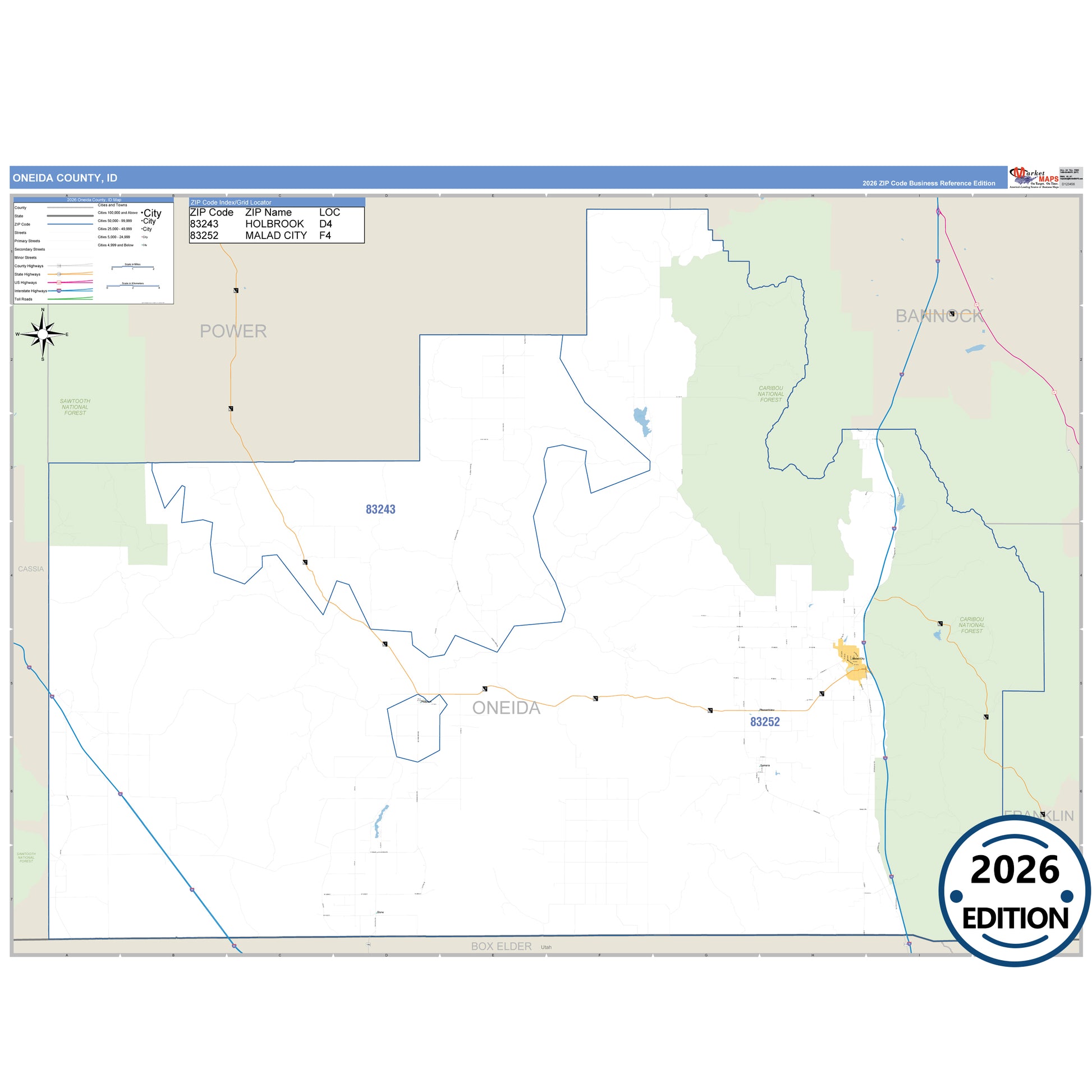The Business Reference Style Oneida County, ID is a detailed map that includes all towns, cities, major roadways, and highways. Available in multiple wall map sizes, perfect for home, school, office, or business display.
