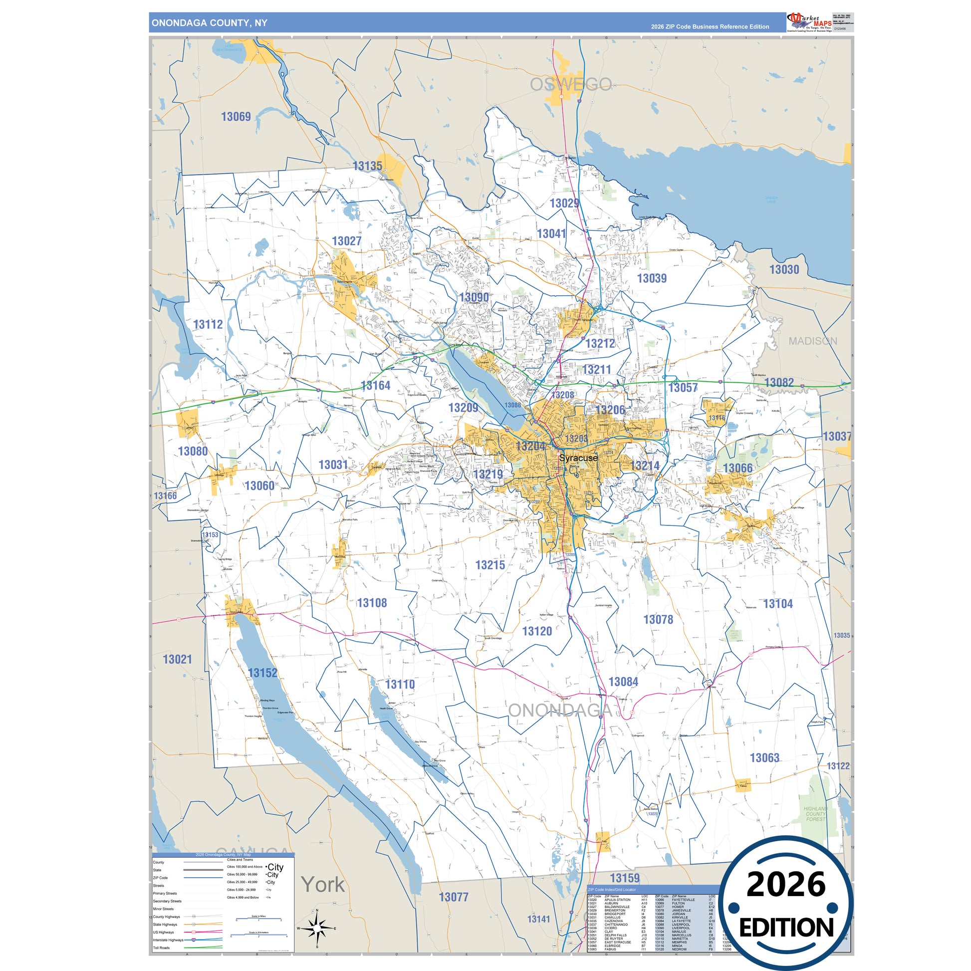 The Business Reference Style Onondaga County, NY is a detailed map that includes all towns, cities, major roadways, and highways. Available in multiple wall map sizes, perfect for home, school, office, or business display.
