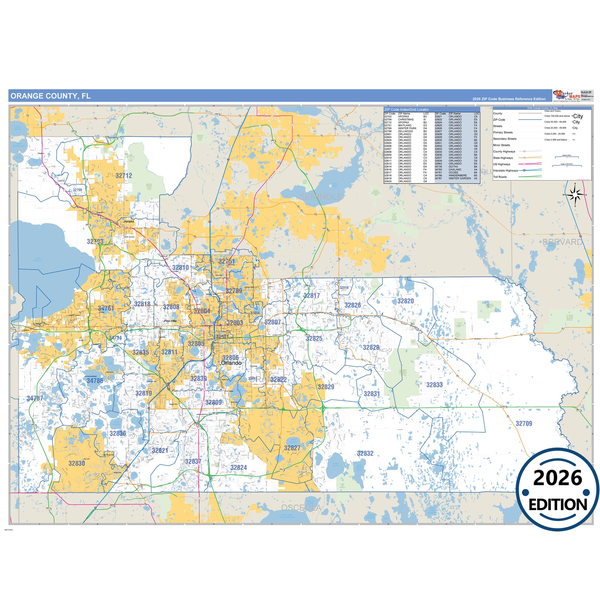 The Business Reference Style Orange County, FL is a detailed map that includes all towns, cities, major roadways, and highways. Available in multiple wall map sizes, perfect for home, school, office, or business display.