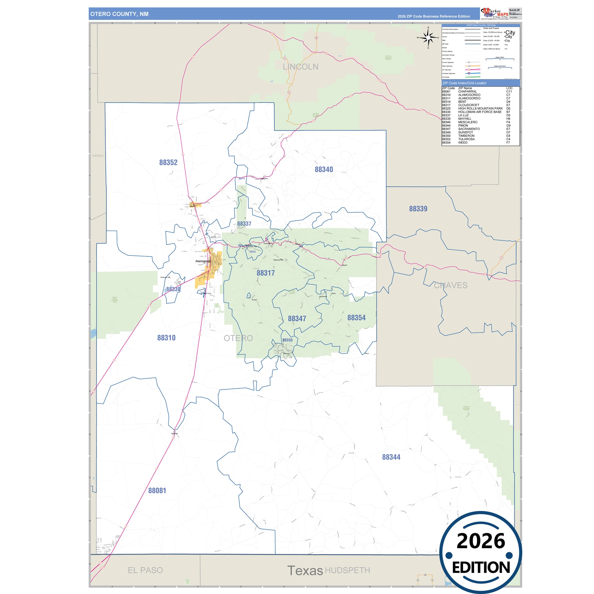 The Business Reference Style Otero County, NM is a detailed map that includes all towns, cities, major roadways, and highways. Available in multiple wall map sizes, perfect for home, school, office, or business display.