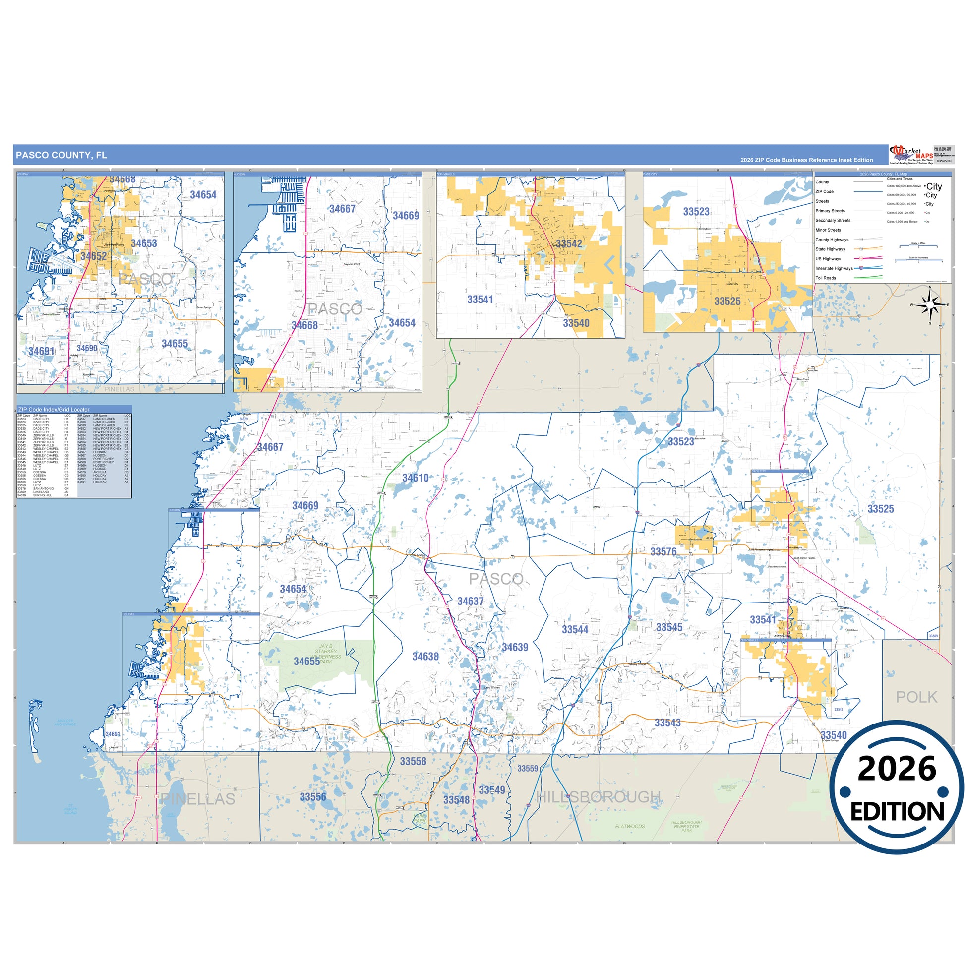 The Business Reference Style Pasco County, FL is a detailed map that includes all towns, cities, major roadways, and highways. Available in multiple wall map sizes, perfect for home, school, office, or business display.