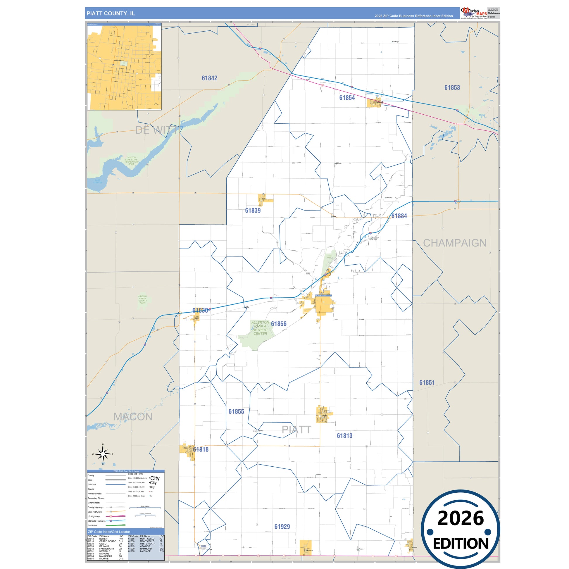 The Business Reference Style Piatt County, IL is a detailed map that includes all towns, cities, major roadways, and highways. Available in multiple wall map sizes, perfect for home, school, office, or business display.