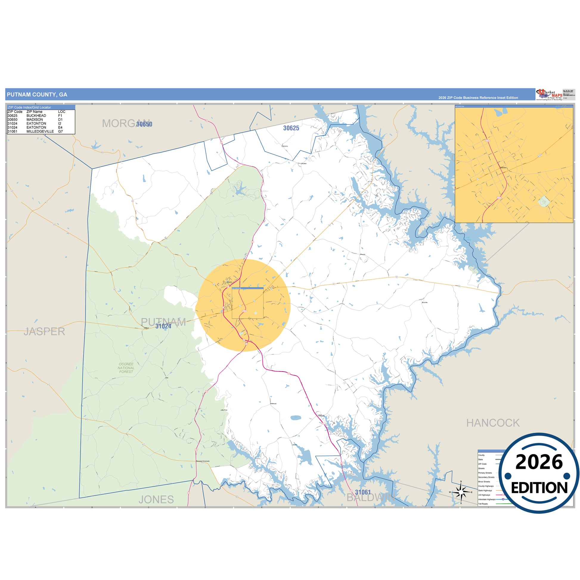 The Business Reference Style Putnam County, GA is a detailed map that includes all towns, cities, major roadways, and highways. Available in multiple wall map sizes, perfect for home, school, office, or business display.