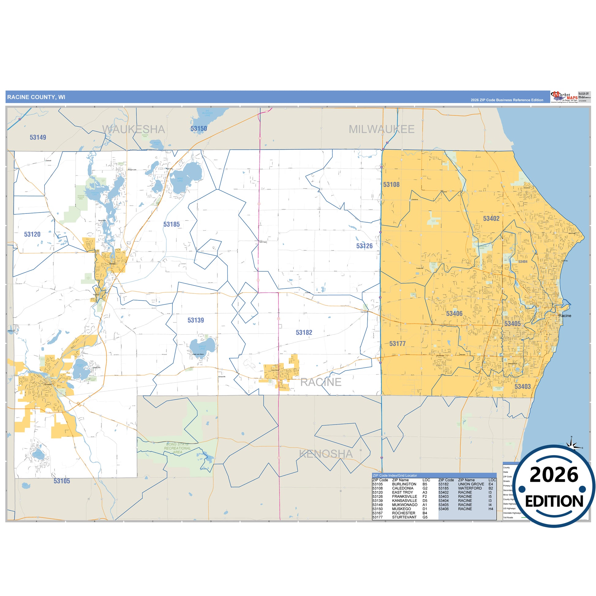 The Business Reference Style Racine County, WI is a detailed map that includes all towns, cities, major roadways, and highways. Available in multiple wall map sizes, perfect for home, school, office, or business display.