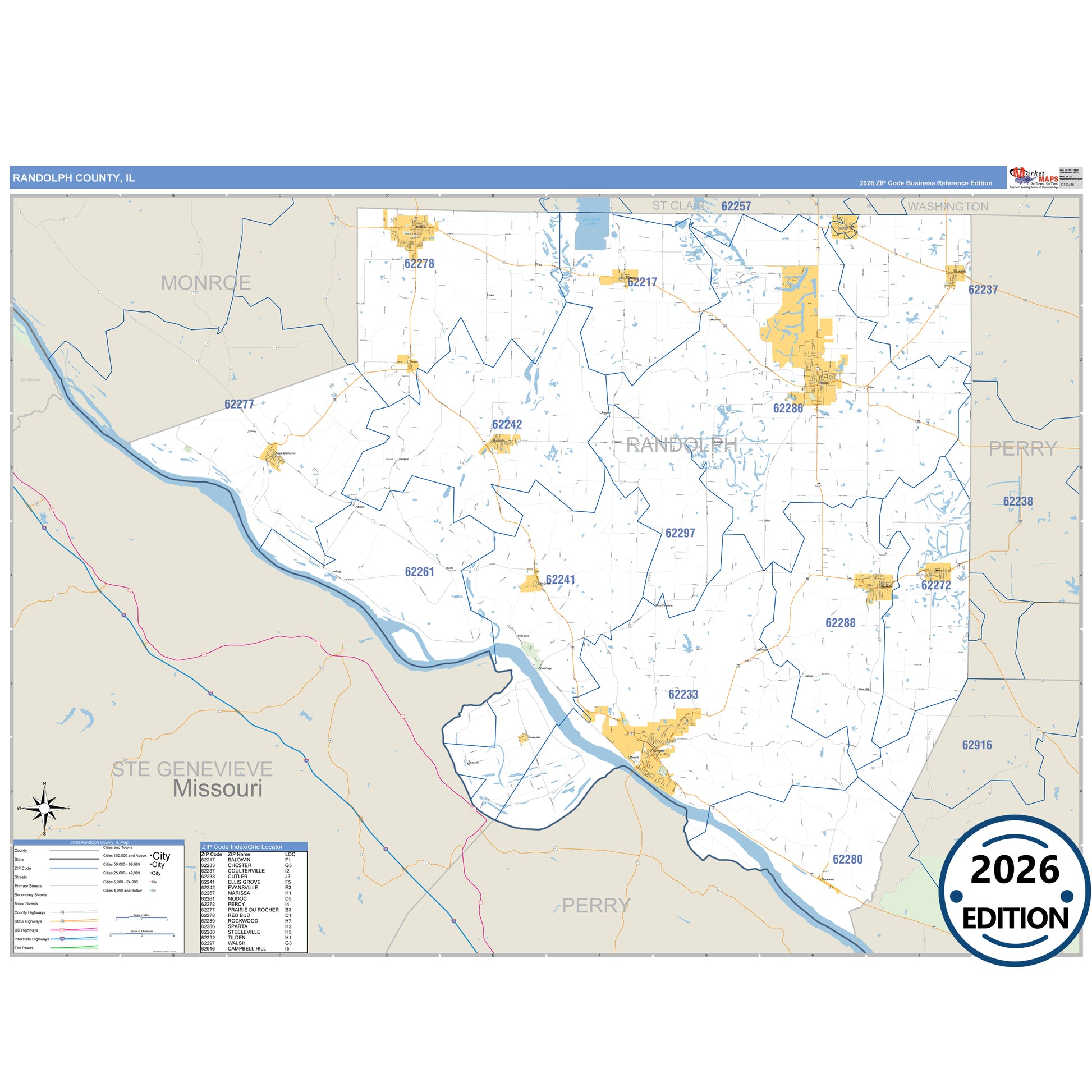 The Business Reference Style Randolph County, IL is a detailed map that includes all towns, cities, major roadways, and highways. Available in multiple wall map sizes, perfect for home, school, office, or business display.